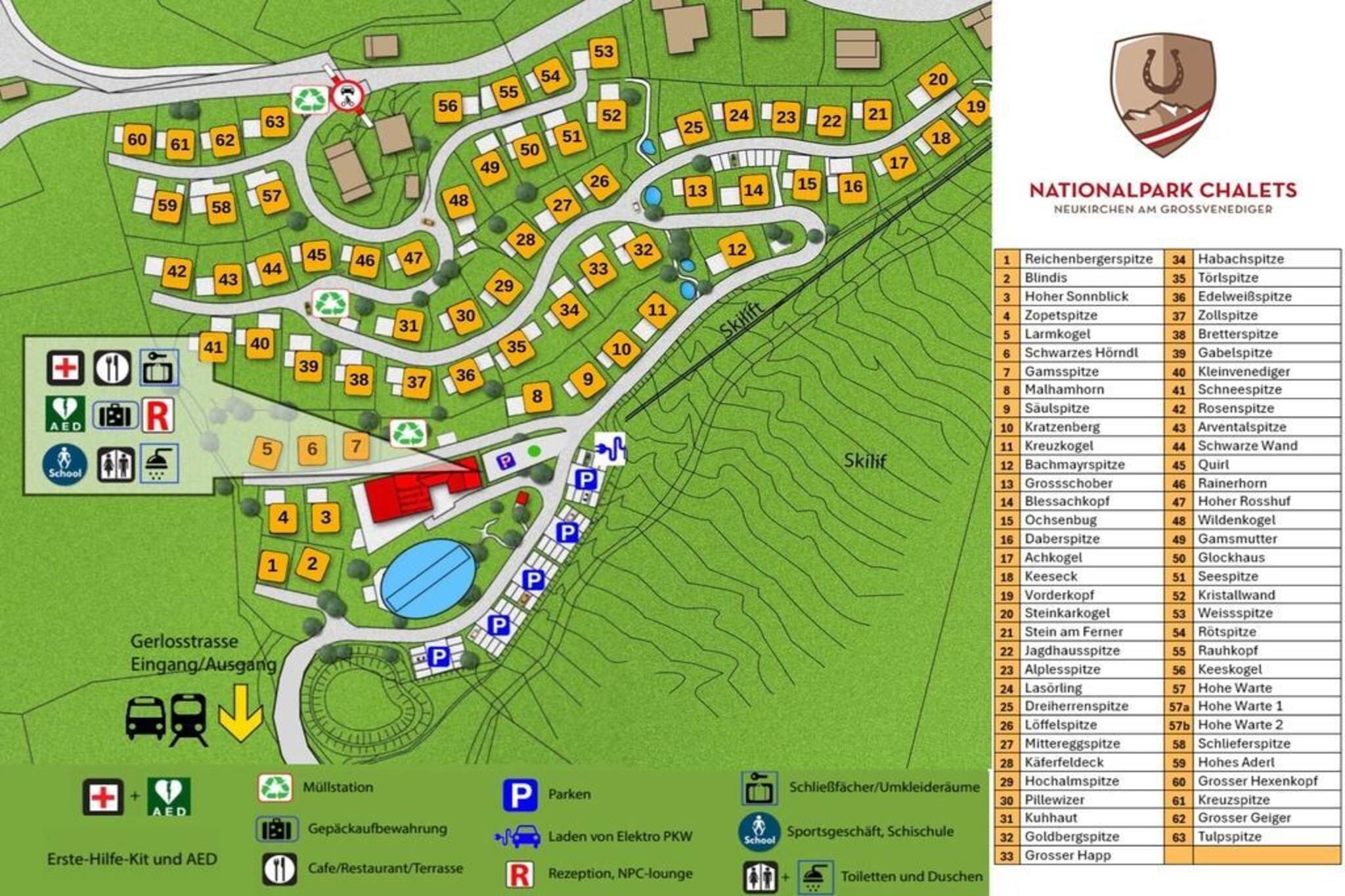 På en meget speciel beliggenhed, sydvest for den berømte Neukirchen am Großvenediger, omgivet af frisk bjergluft, grønne enge og smukke snedækkede hvide skråninger, er dette smukke luksuriøse chalet bygget på Rossbergs solrige skråning. Den smukke hytte er bygget med karakter. Den liberale brug af træ, særprægede detaljer, en perfekt finish kombineret med brugen af materialer af høj kvalitet gør huset yderst komfortabelt og luksuriøst. Du føler dig hjemme helt fra det første øjeblik. Din hytte, som du selv optager alene, har selvfølgelig mindst 2 etager, men nogle gange også 3. Et af disse gulve er opholdsområdet, som har en fantastisk udsigt gennem den enorme vinduer. Udover et opholds- og spiseplads med hyggelig brændeovn er der også et moderne åbent køkken udstyret med alt moderne udstyr. Soveværelserne, der er fordelt over gulvene, er meget atmosfæriske og har møbler af høj kvalitet. Der er også en privat sauna. Du kan parkere din bil på de delvist overdækkede parkeringspladser, som ledig. Der er flere hytter i umiddelbar nærhed, der skaber en slags landsby. Der er en centralt beliggende ski udlejning og skiskole. Derudover er der en "Imbiss" med en lille menu til en snack eller en drink. Kan du lide frisk brød hver dag? Intet problem, du kan bestille disse i receptionen. Skibakken med træningsområde (fra 2019/2020 sæsonen) ligger inden for gåafstand af hytten, perfekt til familier med små børn eller begyndere. Avancerede skiløbere kan bringes til elevatoren af det smukke Wildkogel Arena skiområde med den gratis skibus. På grund af beliggenheden lige på skråningerne kan du stå tilbage til din hytte, når der er masser af sne. Vil du have noget andet? Skiområdet Zillertal Arena eller Kitzbühel / Kirchberg ligger kun få minutter væk i bil. Om sommeren tilbyder de omkringliggende bjerge og de mange seværdigheder at byde masser af muligheder for den aktive feriegæster eller for dem der søger ro. I