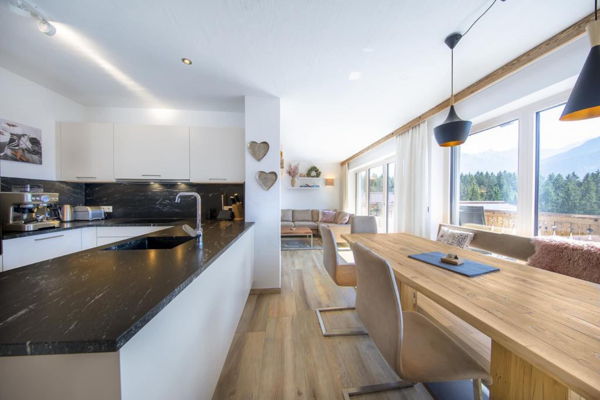 På en meget speciel beliggenhed, sydvest for den berømte Neukirchen am Großvenediger, omgivet af frisk bjergluft, grønne enge og smukke snedækkede hvide skråninger, er dette smukke luksuriøse chalet bygget på Rossbergs solrige skråning. Den smukke hytte er bygget med karakter. Den liberale brug af træ, særprægede detaljer, en perfekt finish kombineret med brugen af materialer af høj kvalitet gør huset yderst komfortabelt og luksuriøst. Du føler dig hjemme helt fra det første øjeblik. Din hytte, som du selv optager alene, har selvfølgelig mindst 2 etager, men nogle gange også 3. Et af disse gulve er opholdsområdet, som har en fantastisk udsigt gennem den enorme vinduer. Udover et opholds- og spiseplads med hyggelig brændeovn er der også et moderne åbent køkken udstyret med alt moderne udstyr. Soveværelserne, der er fordelt over gulvene, er meget atmosfæriske og har møbler af høj kvalitet. Der er også en privat sauna. Du kan parkere din bil på de delvist overdækkede parkeringspladser, som ledig. Der er flere hytter i umiddelbar nærhed, der skaber en slags landsby. Der er en centralt beliggende ski udlejning og skiskole. Derudover er der en "Imbiss" med en lille menu til en snack eller en drink. Kan du lide frisk brød hver dag? Intet problem, du kan bestille disse i receptionen. Skibakken med træningsområde (fra 2019/2020 sæsonen) ligger inden for gåafstand af hytten, perfekt til familier med små børn eller begyndere. Avancerede skiløbere kan bringes til elevatoren af det smukke Wildkogel Arena skiområde med den gratis skibus. På grund af beliggenheden lige på skråningerne kan du stå tilbage til din hytte, når der er masser af sne. Vil du have noget andet? Skiområdet Zillertal Arena eller Kitzbühel / Kirchberg ligger kun få minutter væk i bil. Om sommeren tilbyder de omkringliggende bjerge og de mange seværdigheder at byde masser af muligheder for den aktive feriegæster eller for dem der søger ro. I