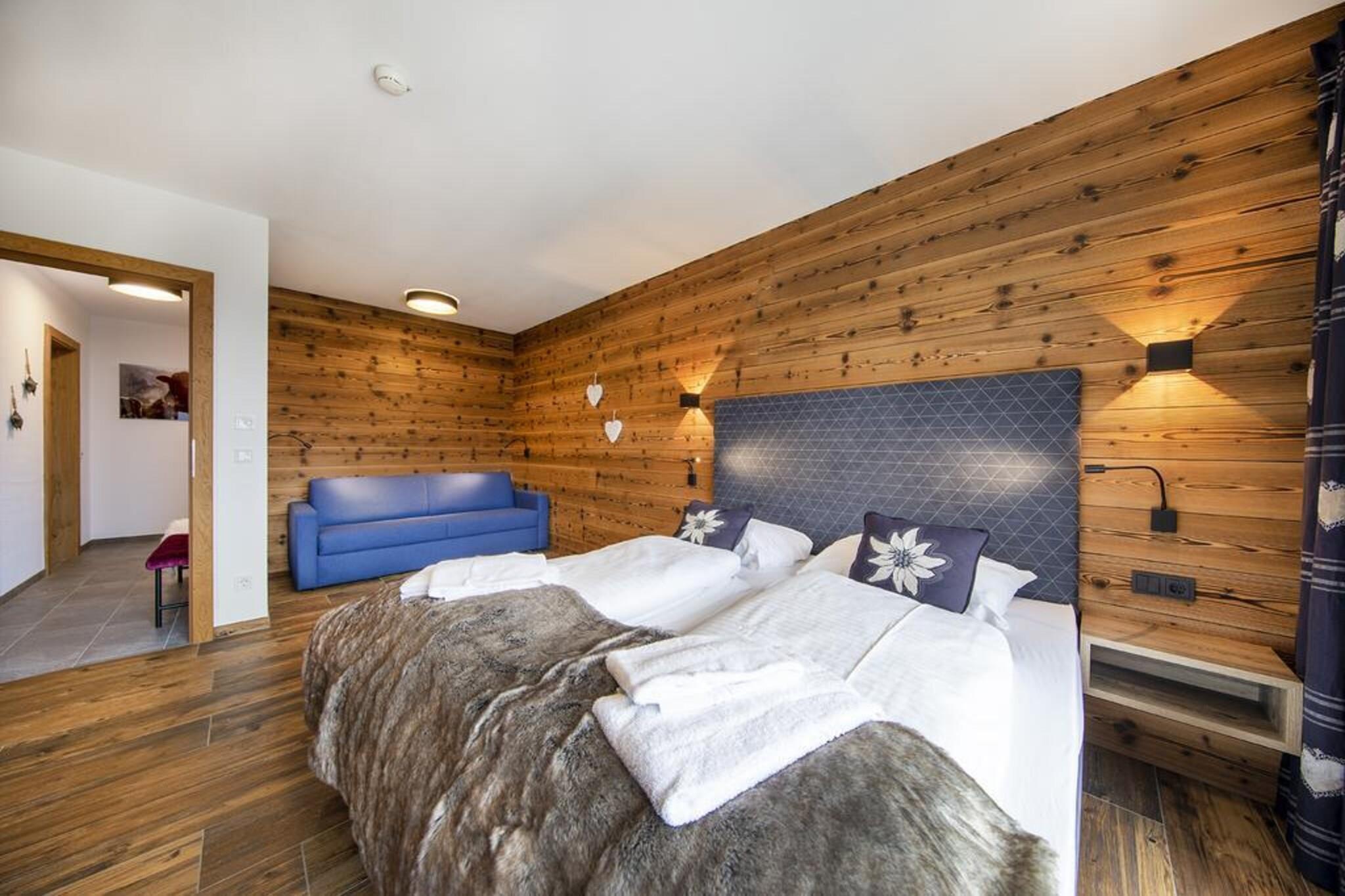 På en meget speciel beliggenhed, sydvest for den berømte Neukirchen am Großvenediger, omgivet af frisk bjergluft, grønne enge og smukke snedækkede hvide skråninger, er dette smukke luksuriøse chalet bygget på Rossbergs solrige skråning. Den smukke hytte er bygget med karakter. Den liberale brug af træ, særprægede detaljer, en perfekt finish kombineret med brugen af materialer af høj kvalitet gør huset yderst komfortabelt og luksuriøst. Du føler dig hjemme helt fra det første øjeblik. Din hytte, som du selv optager alene, har selvfølgelig mindst 2 etager, men nogle gange også 3. Et af disse gulve er opholdsområdet, som har en fantastisk udsigt gennem den enorme vinduer. Udover et opholds- og spiseplads med hyggelig brændeovn er der også et moderne åbent køkken udstyret med alt moderne udstyr. Soveværelserne, der er fordelt over gulvene, er meget atmosfæriske og har møbler af høj kvalitet. Der er også en privat sauna. Du kan parkere din bil på de delvist overdækkede parkeringspladser, som ledig. Der er flere hytter i umiddelbar nærhed, der skaber en slags landsby. Der er en centralt beliggende ski udlejning og skiskole. Derudover er der en "Imbiss" med en lille menu til en snack eller en drink. Kan du lide frisk brød hver dag? Intet problem, du kan bestille disse i receptionen. Skibakken med træningsområde (fra 2019/2020 sæsonen) ligger inden for gåafstand af hytten, perfekt til familier med små børn eller begyndere. Avancerede skiløbere kan bringes til elevatoren af det smukke Wildkogel Arena skiområde med den gratis skibus. På grund af beliggenheden lige på skråningerne kan du stå tilbage til din hytte, når der er masser af sne. Vil du have noget andet? Skiområdet Zillertal Arena eller Kitzbühel / Kirchberg ligger kun få minutter væk i bil. Om sommeren tilbyder de omkringliggende bjerge og de mange seværdigheder at byde masser af muligheder for den aktive feriegæster eller for dem der søger ro. I