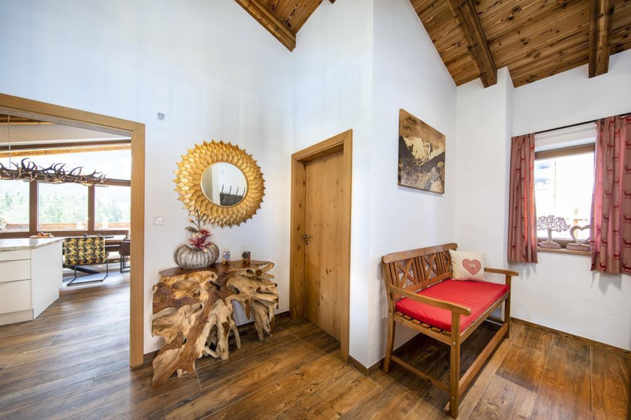 På en meget speciel beliggenhed, sydvest for den berømte Neukirchen am Großvenediger, omgivet af frisk bjergluft, grønne enge og smukke snedækkede hvide skråninger, er dette smukke luksuriøse chalet bygget på Rossbergs solrige skråning. Den smukke hytte er bygget med karakter. Den liberale brug af træ, særprægede detaljer, en perfekt finish kombineret med brugen af materialer af høj kvalitet gør huset yderst komfortabelt og luksuriøst. Du føler dig hjemme helt fra det første øjeblik. Din hytte, som du selv optager alene, har selvfølgelig mindst 2 etager, men nogle gange også 3. Et af disse gulve er opholdsområdet, som har en fantastisk udsigt gennem den enorme vinduer. Udover et opholds- og spiseplads med hyggelig brændeovn er der også et moderne åbent køkken udstyret med alt moderne udstyr. Soveværelserne, der er fordelt over gulvene, er meget atmosfæriske og har møbler af høj kvalitet. Der er også en privat sauna. Du kan parkere din bil på de delvist overdækkede parkeringspladser, som ledig. Der er flere hytter i umiddelbar nærhed, der skaber en slags landsby. Der er en centralt beliggende ski udlejning og skiskole. Derudover er der en "Imbiss" med en lille menu til en snack eller en drink. Kan du lide frisk brød hver dag? Intet problem, du kan bestille disse i receptionen. Skibakken med træningsområde (fra 2019/2020 sæsonen) ligger inden for gåafstand af hytten, perfekt til familier med små børn eller begyndere. Avancerede skiløbere kan bringes til elevatoren af det smukke Wildkogel Arena skiområde med den gratis skibus. På grund af beliggenheden lige på skråningerne kan du stå tilbage til din hytte, når der er masser af sne. Vil du have noget andet? Skiområdet Zillertal Arena eller Kitzbühel / Kirchberg ligger kun få minutter væk i bil. Om sommeren tilbyder de omkringliggende bjerge og de mange seværdigheder at byde masser af muligheder for den aktive feriegæster eller for dem der søger ro. I