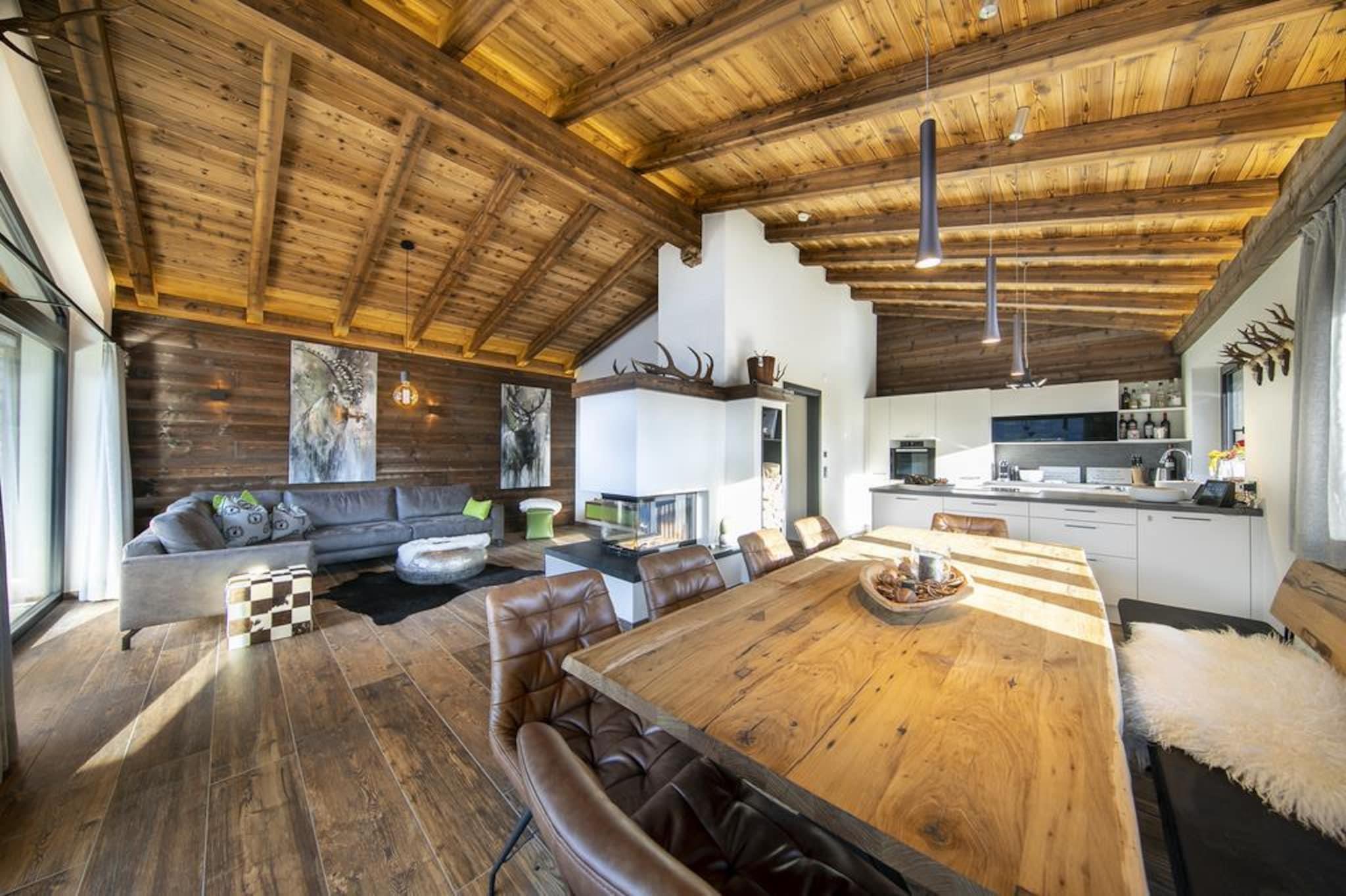 På et helt særligt sted, sydvest for det velkendte Neukirchen am Großvenediger og omgivet af frisk bjergluft, grønne enge og smukt snedækkede hvide bakker, er dette meget luksuriøse chalet bygget på den solrige skråning af Roßberg. Det storslåede chalet er designet med karakter. Brugen af masser af træ, specifikke detaljer og en perfekt finish i kombination med brugen af materialer af høj kvalitet sikrer et særligt komfortabelt og luksuriøst hus. Du vil straks føle dig hjemme. Dit chalet, som du naturligvis bor alene, har tre etager. En af etagerne er opholdsstuen, som tilbyder en enestående udsigt med sine enorme vinduespartier. Ud over en opholds- og spisestue med en hyggelig brændeovn er der et moderne åbent køkken udstyret med moderne apparater. Soveværelserne, som er fordelt over etagerne, er meget hyggelige og møbleret i høj standard. Derudover har du din egen private sauna. Du kan parkere din bil (to stukkaturer) på de delvist overdækkede parkeringspladser. Der er andre hytter i umiddelbar nærhed, så der er skabt en slags landsby. En skiudlejning med skiskole er centralt beliggende. Der er også en snackbar med en lille menu til en snack eller en drink. Ønsker du friske rundstykker hver dag? Intet problem, disse kan bestilles i receptionen. Skiliften med øvelsesmark ligger i gåafstand fra hytten og er perfekt til familier med små børn eller begyndere. Øvede skiløbere kan tages til liften i det storslåede skiområde Wildkogel Arena med den gratis skibus. Med beliggenheden lige ved pisterne kan du stå på ski tilbage til dit hytteområde, hvis der er nok sne. Vil du opleve noget anderledes for en gangs skyld? Skiområderne ved Zillertal Arena eller Kitzbühel/Kirchberg ligger kun få minutter væk i bil. Om sommeren tilbyder de omkringliggende bjerge og de mange seværdigheder i umiddelbar nærhed adskillige muligheder for den aktive feriegæst eller dem, der søger fred og ro. I perioden fra maj til oktober inklusive modtager du som gæst Nationalparkens sommerkort med gratis adgang til lifter, svømmebassiner, aktiviteter, offentlig transport og meget mere. Kan virkelig anbefales! Et lager af brænde er inkluderet i prisen.