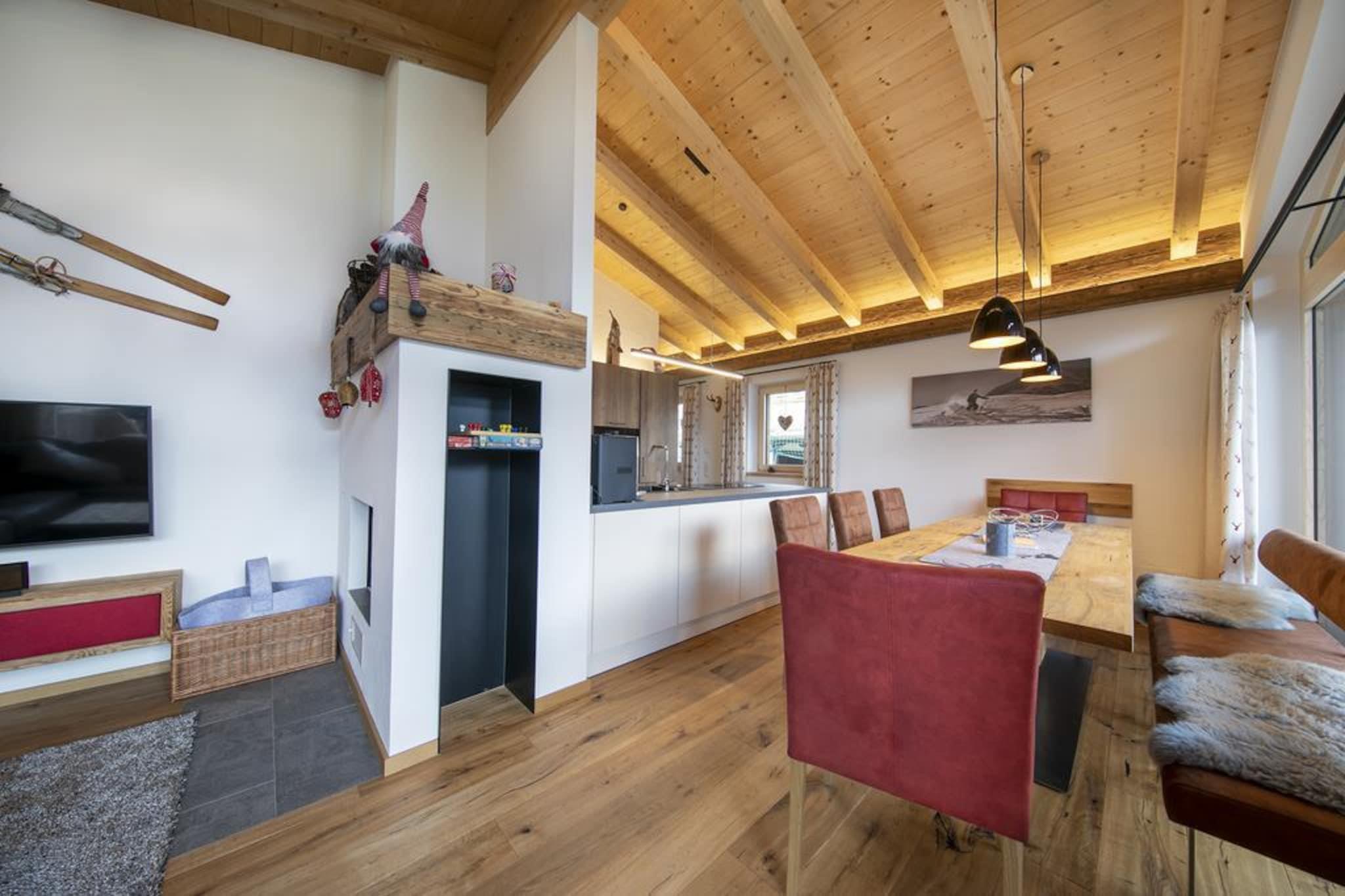 På en meget speciel beliggenhed, sydvest for den berømte Neukirchen am Großvenediger, omgivet af frisk bjergluft, grønne enge og smukke snedækkede hvide skråninger, er dette smukke luksuriøse chalet bygget på Rossbergs solrige skråning. Den smukke hytte er bygget med karakter. Den liberale brug af træ, særprægede detaljer, en perfekt finish kombineret med brugen af materialer af høj kvalitet gør huset yderst komfortabelt og luksuriøst. Du føler dig hjemme helt fra det første øjeblik. Din hytte, som du selv optager alene, har selvfølgelig mindst 2 etager, men nogle gange også 3. Et af disse gulve er opholdsområdet, som har en fantastisk udsigt gennem den enorme vinduer. Udover et opholds- og spiseplads med hyggelig brændeovn er der også et moderne åbent køkken udstyret med alt moderne udstyr. Soveværelserne, der er fordelt over gulvene, er meget atmosfæriske og har møbler af høj kvalitet. Der er også en privat sauna. Du kan parkere din bil på de delvist overdækkede parkeringspladser, som ledig. Der er flere hytter i umiddelbar nærhed, der skaber en slags landsby. Der er en centralt beliggende ski udlejning og skiskole. Derudover er der en "Imbiss" med en lille menu til en snack eller en drink. Kan du lide frisk brød hver dag? Intet problem, du kan bestille disse i receptionen. Skibakken med træningsområde (fra 2019/2020 sæsonen) ligger inden for gåafstand af hytten, perfekt til familier med små børn eller begyndere. Avancerede skiløbere kan bringes til elevatoren af det smukke Wildkogel Arena skiområde med den gratis skibus. På grund af beliggenheden lige på skråningerne kan du stå tilbage til din hytte, når der er masser af sne. Vil du have noget andet? Skiområdet Zillertal Arena eller Kitzbühel / Kirchberg ligger kun få minutter væk i bil. Om sommeren tilbyder de omkringliggende bjerge og de mange seværdigheder at byde masser af muligheder for den aktive feriegæster eller for dem der søger ro. I