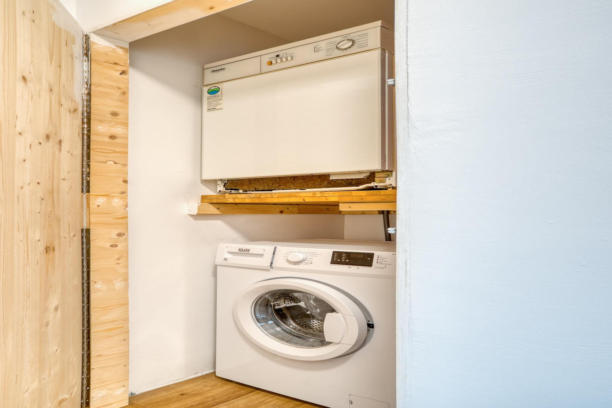 På 1. etage: (stue / spisestue(Fjernsyn(parabol, Tyske TV-kanaler)), soveværelse(dobbeltseng), soveværelse(dobbeltseng), soveværelse(dobbeltseng), soveværelse(dobbeltseng, køjeseng), badeværelse(bruser, toilet)) åbent køkken(kakkelovn, kogeplade(Komfur med fire kogeplader, glaskeramisk), elkedel, kaffemaskine, ovn, mikrobølgeovn, opvaskemaskine , køle-fryseskab), badeværelse(bruser, toilet), tørretumbler, vaskemaskine, parkering, baby crib(free)