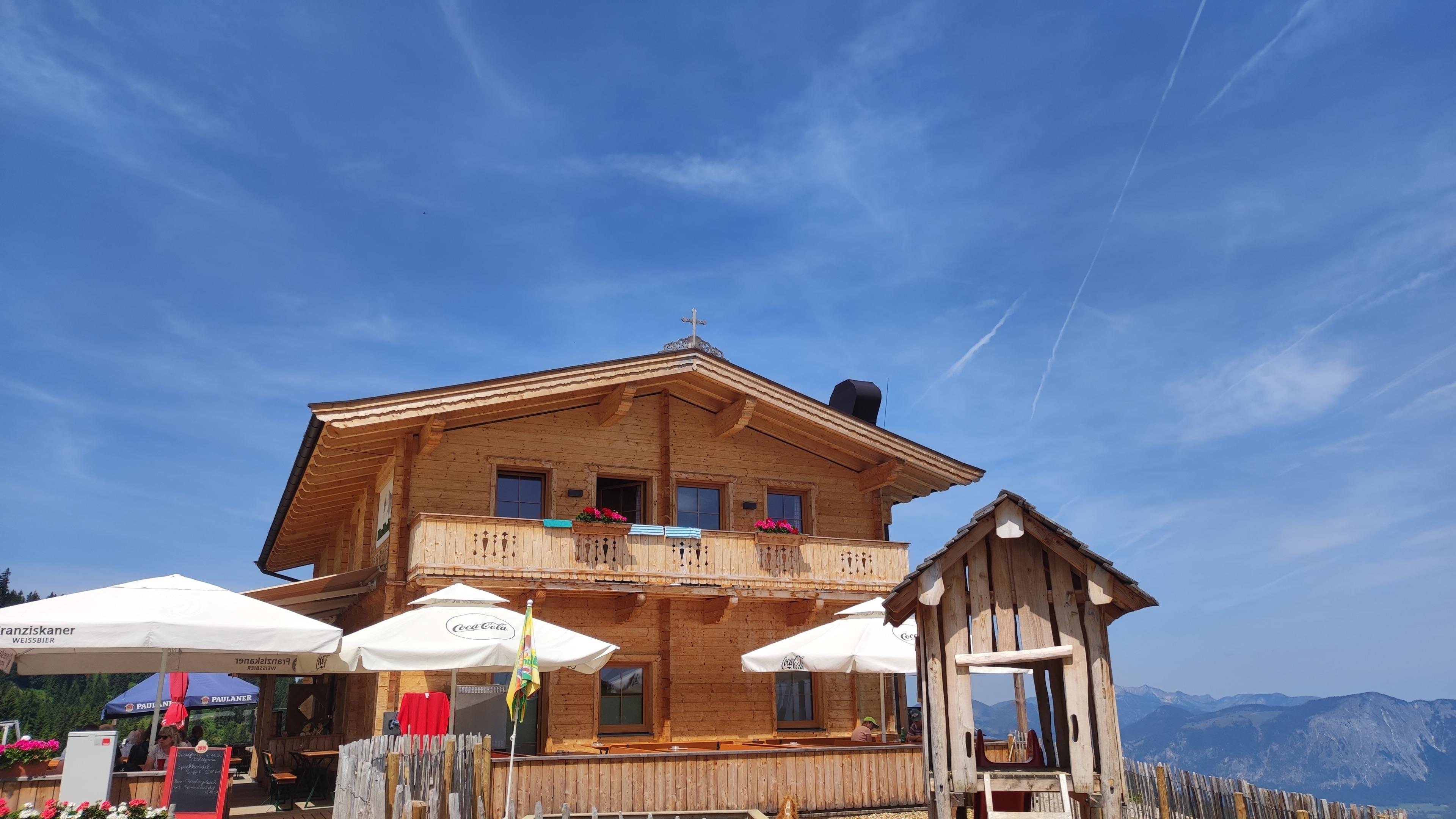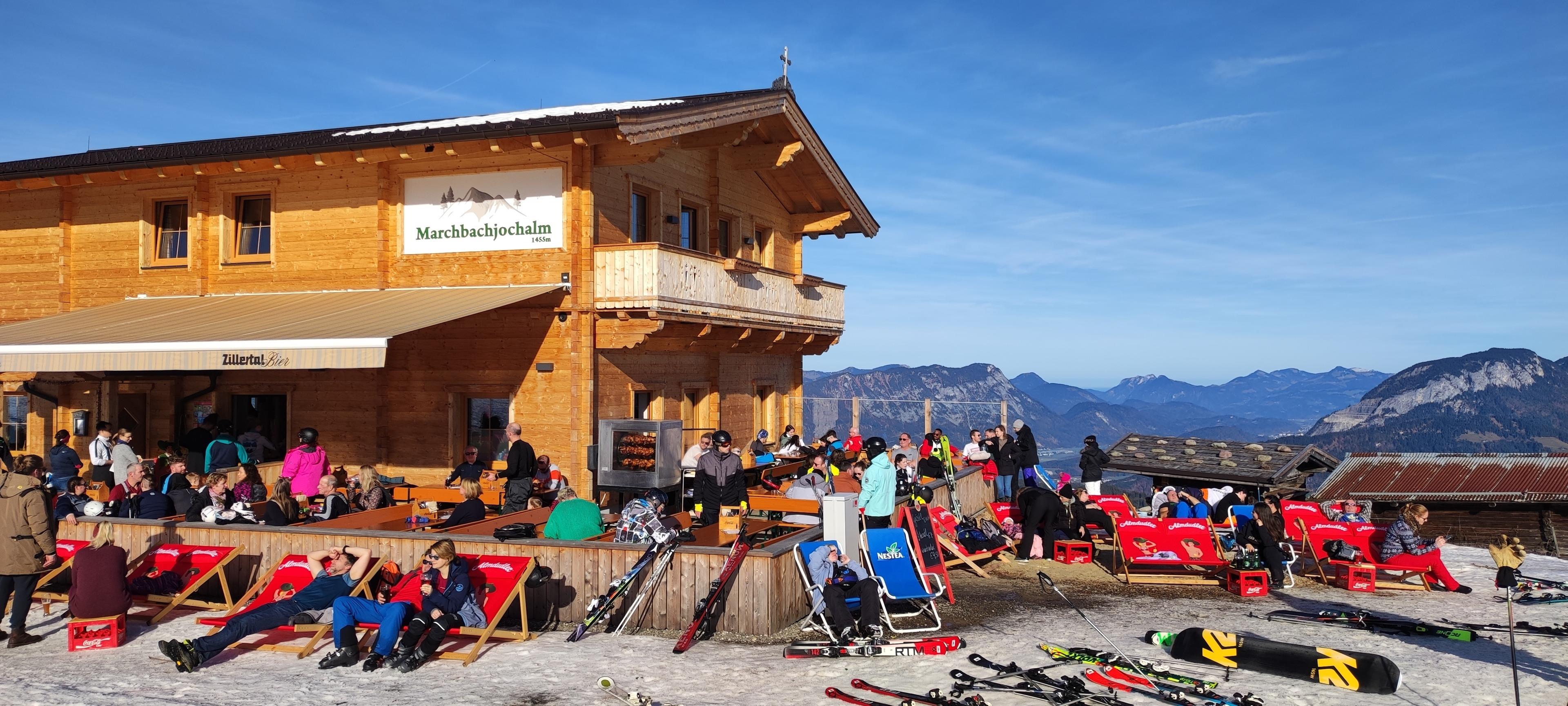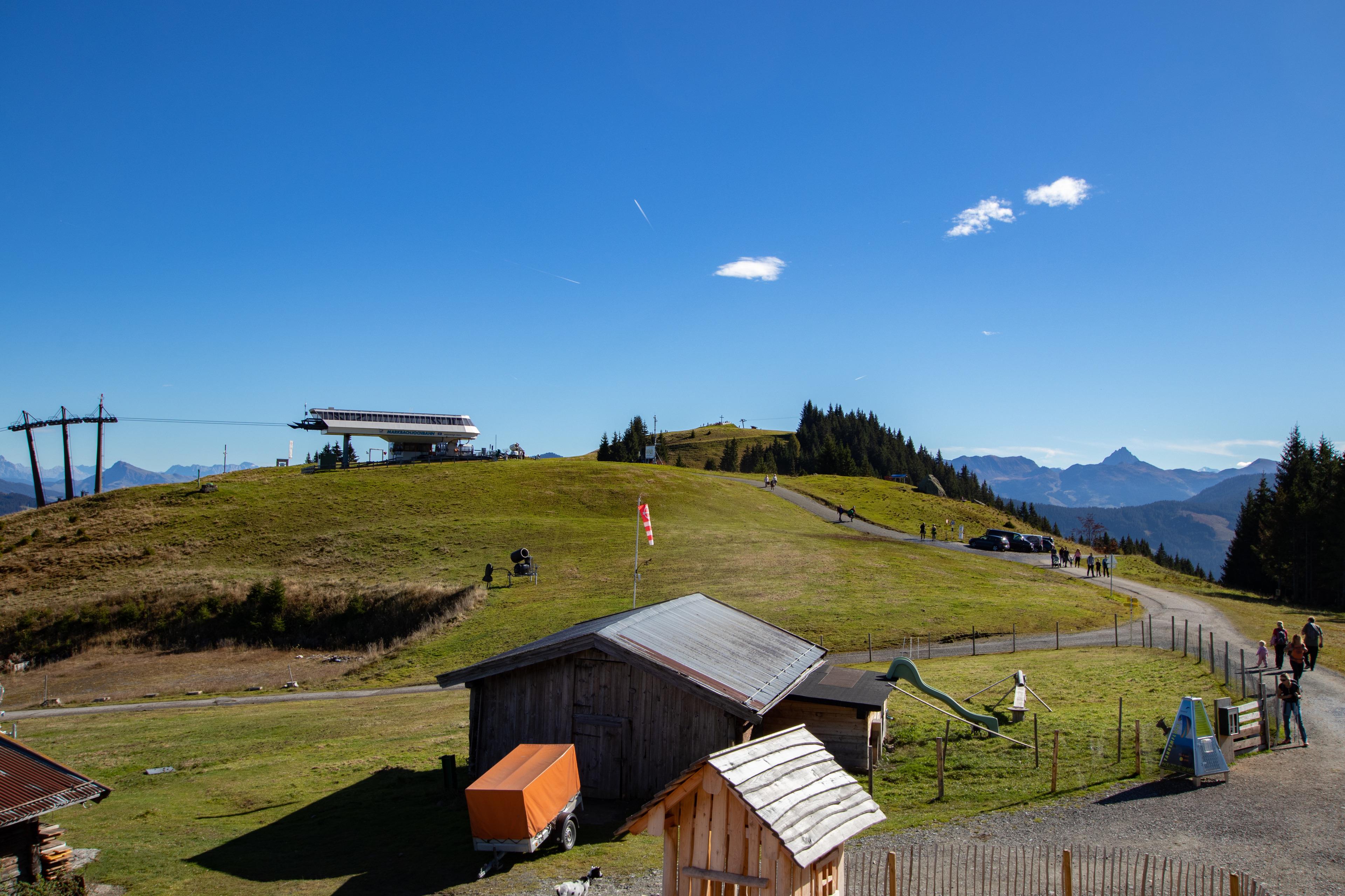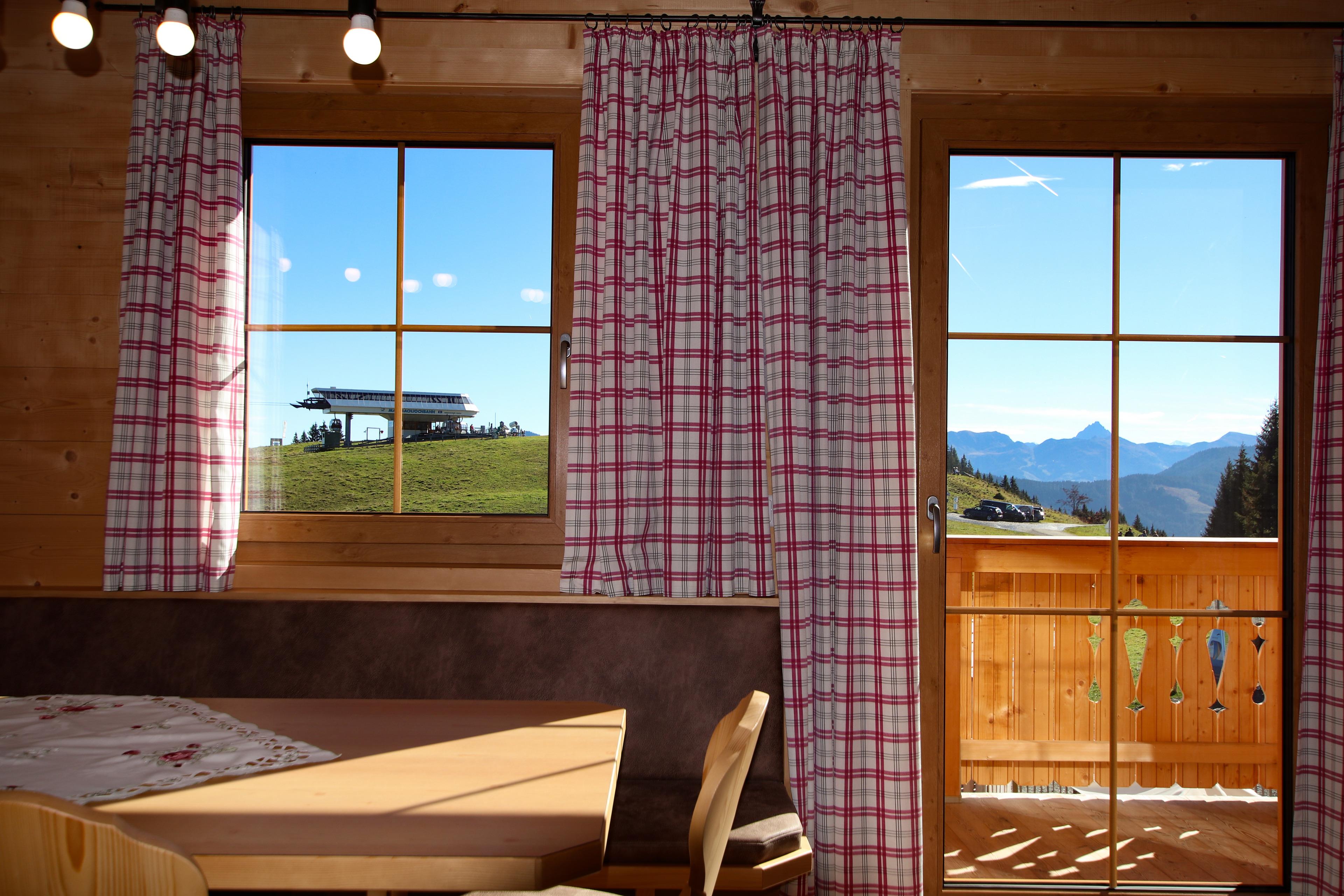 Markbachjochhütte Wildschönau WILD700: Von der Skihütte direkter Blick in Richtung Wilder Kaiser und die umgebene Bergwelt der Kitzbüheler Alpen. In der Saison können Sie die Tiroler Küche im Bergrestaurant im Haus genieße. Der Hüttenbesitzer bietet ein gegen Anmeldung und Gebühr ausgezeichnetes Bergfrühstück im Haus an. Ausstattung: Wohnraum ca.85m², 2 Schlafzimmer jeweils mit Doppelbett und Etagenbett bieten Platz für bis zu 8 Personen. Eines der beiden Schlafzimmer mit Ausgang zum Balkon, große Wohnküche mit Eckbank und Stühlen. 1 Dusche/WC, 1 Gäste/WC. Abstellmöglichkeiten von Ski und Fahrräder im Haus. Gleitschirm-Startplatz direkt unterhalb vom Haus, Ski in-Ski out. Im Sommer Wandertouren und Mountainbike Touren ab der Hütte. Der Hüttenbesitzer bietet ab Liftausstieg einen Gepäcktransport an. Kostenloses Parken an der Talstation Außerhalb der Gondelzeiten besteht die Möglichkeit per PKW über eine Private Feldstraße bis zur Hütte zu fahren (Nur Im Sommer!) Im Winter ist die Straße nur mit Schneeketten befahrbar und nur bis zum Parkplatz am Markbachjoch.