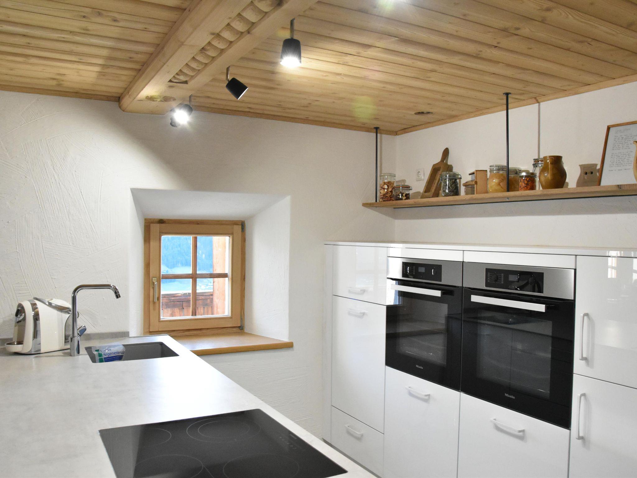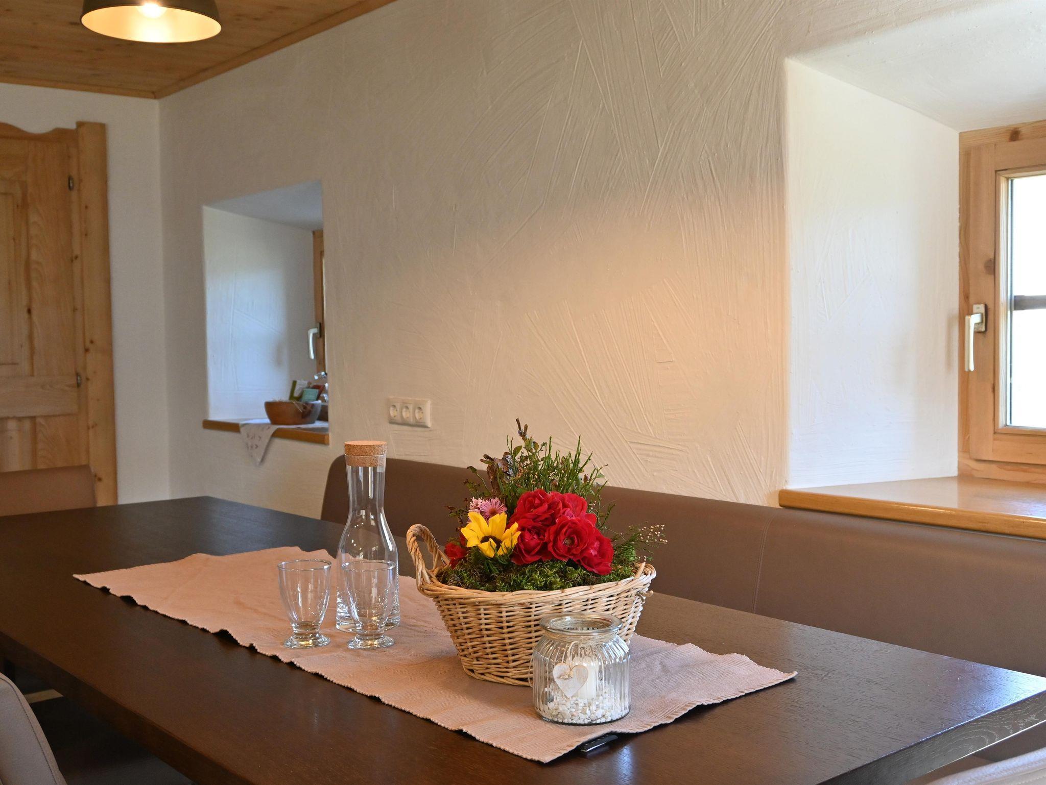 90 qm große Ferienwohnung für fünf Personen an einem Südhang gelegen, auf 1.000 m Seehöhe.