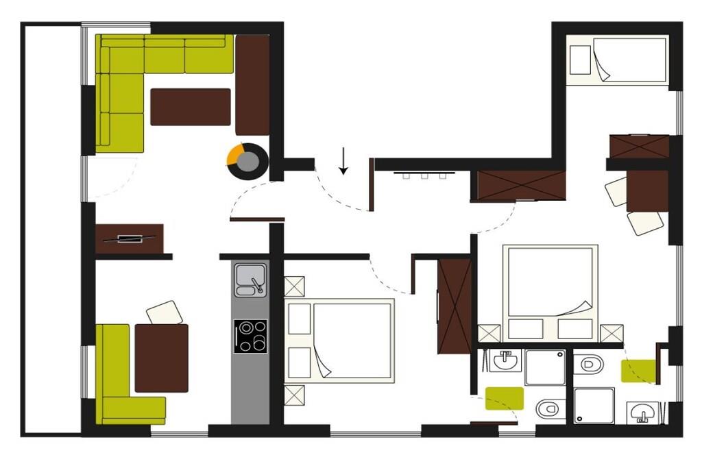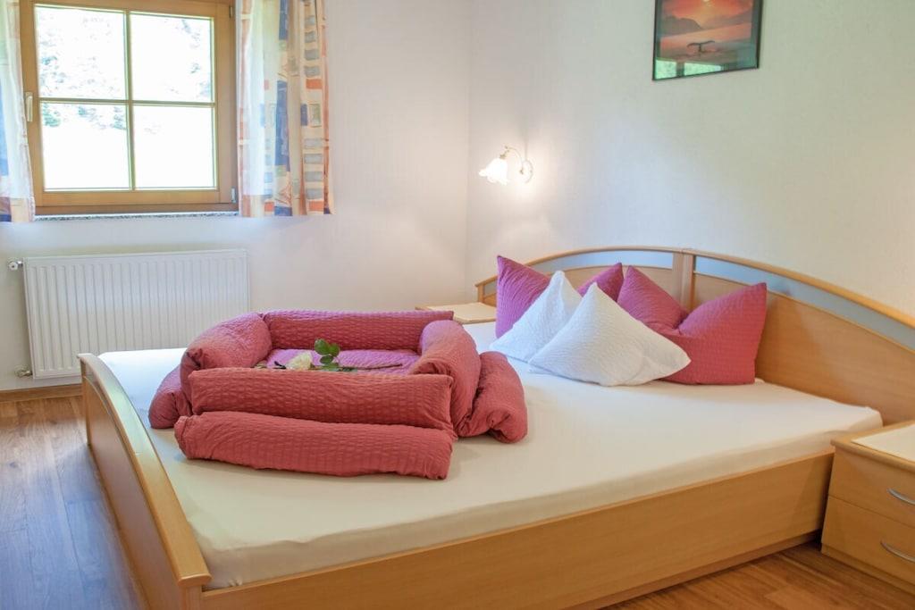 Feriehuset Lärchenwald ligger på det solrige højplateau Niederthai i 1.550 meters højde over havets overflade. Takket være sin beliggenhed lige ved Ötztal-hovedvejen er Niederthai og Lärchenwald-huset indbegrebet af fred og afslapning i enhver sæson. Vores komfortable lejlighed på 80 kvadratmeter tilbyder rigelig plads til afslapning efter en aktiv dag i Ötztal-bjergene. Lejligheden har to separate soveværelser, hver med eget bad/toilet, et køjesengsværelse (ideelt til børn), et fuldt udstyret køkken med spisebord, en hyggelig stue med kakkelovn, satellit-tv og en sydvendt balkon med en storslået udsigt. Som en ekstra service tilbyder vi gratis Wi-Fi.