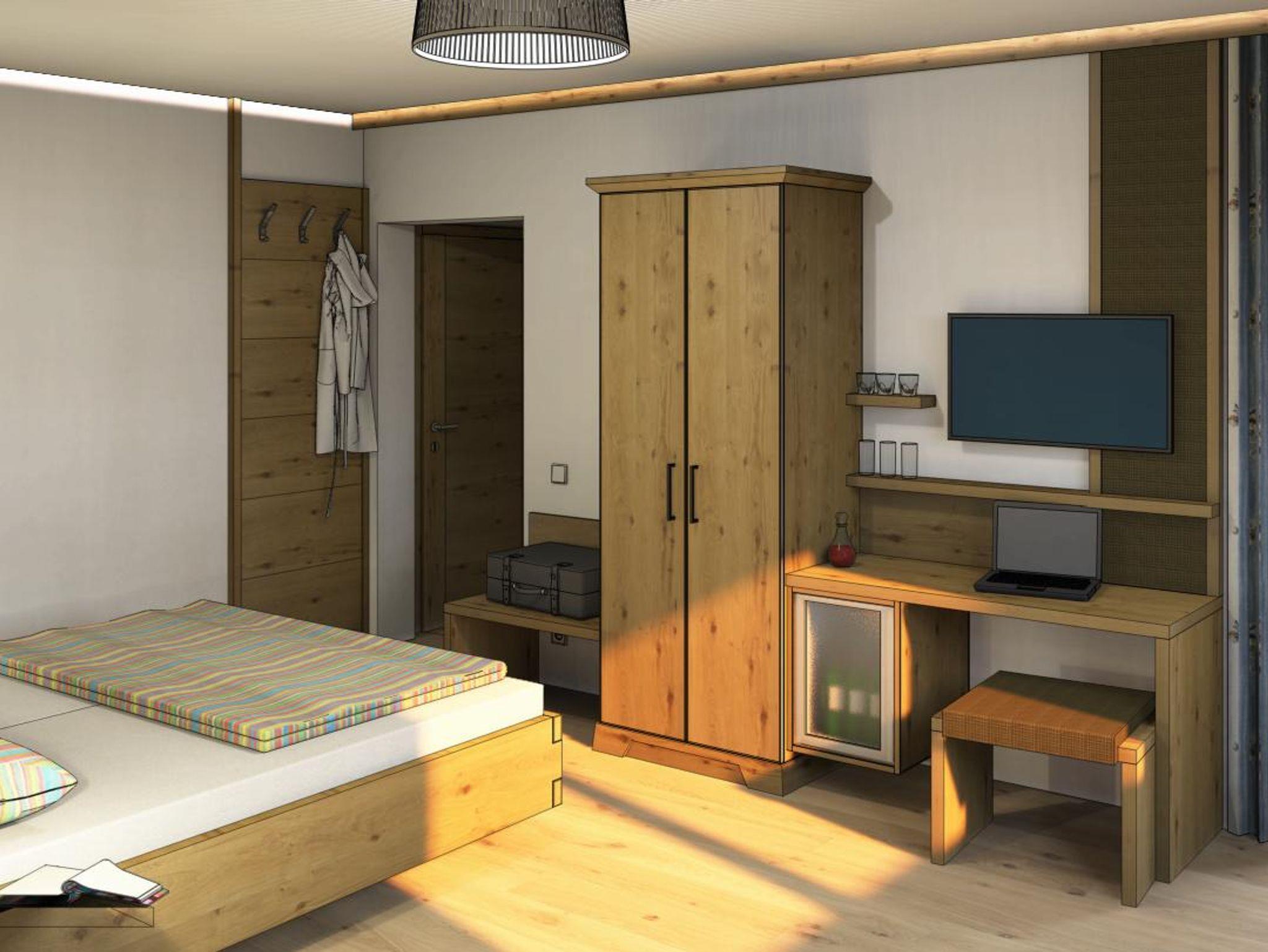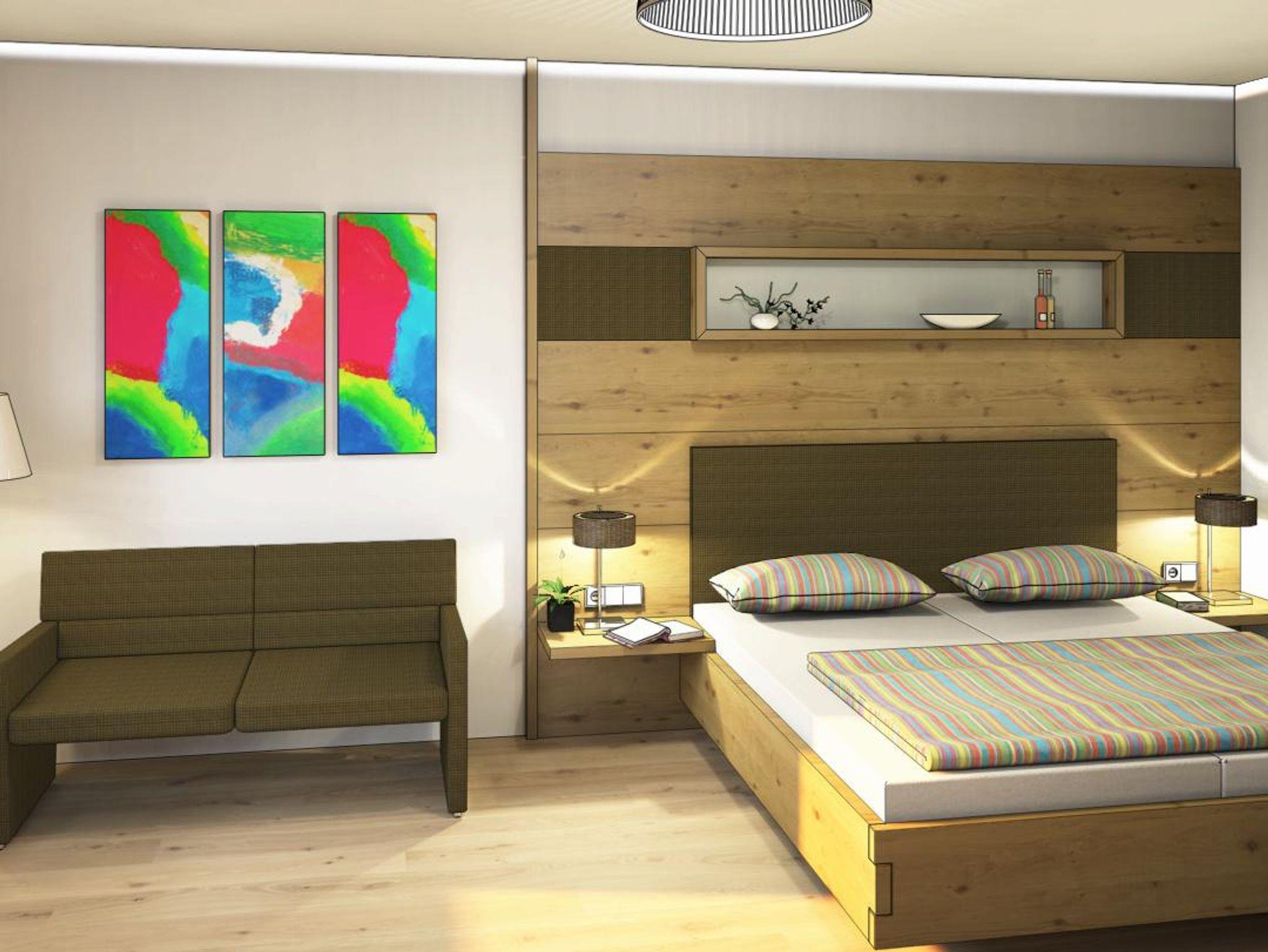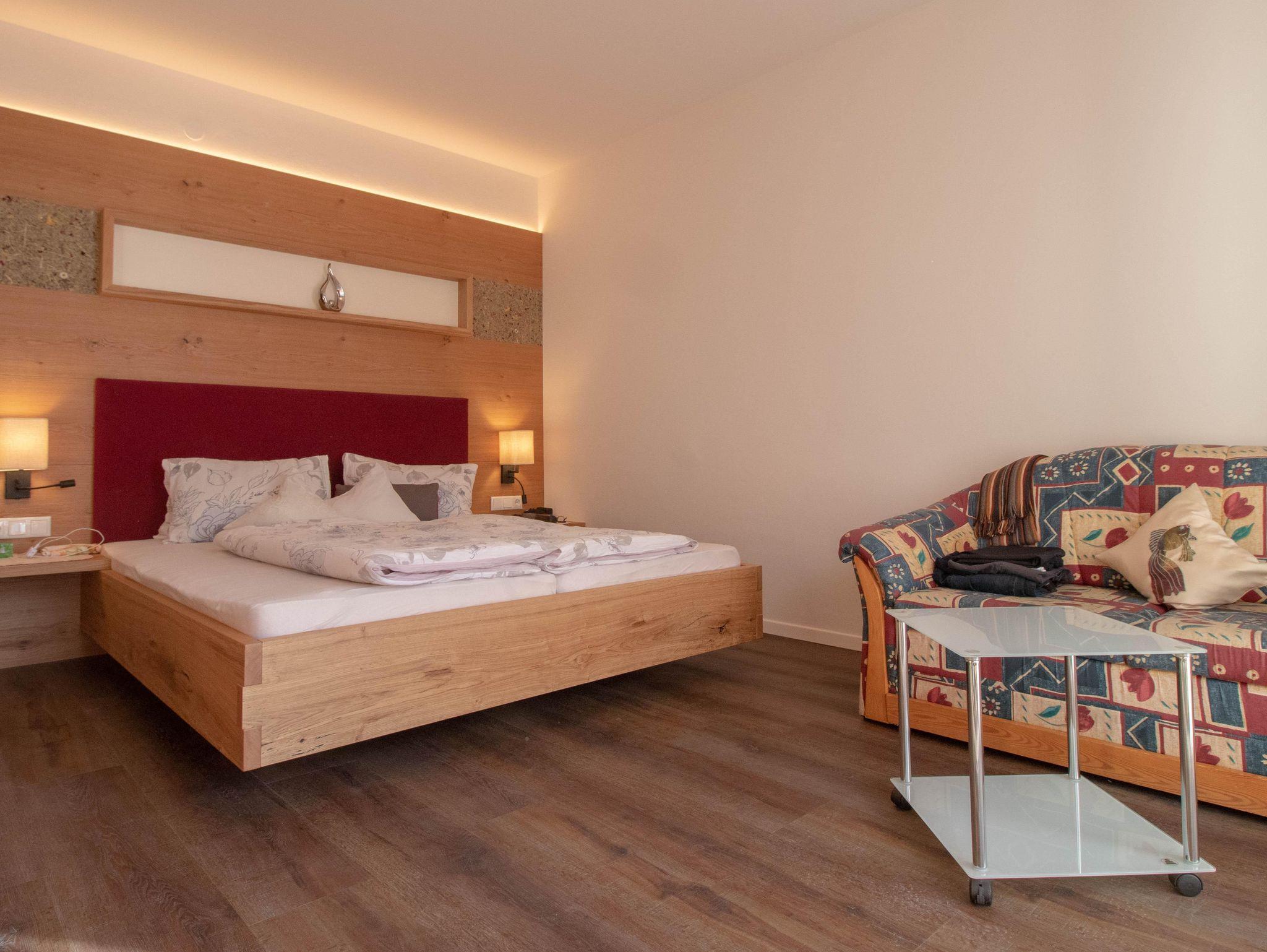 Moderne helle und geräumige Zimmer mit Doppelbett und Schlafsofa,