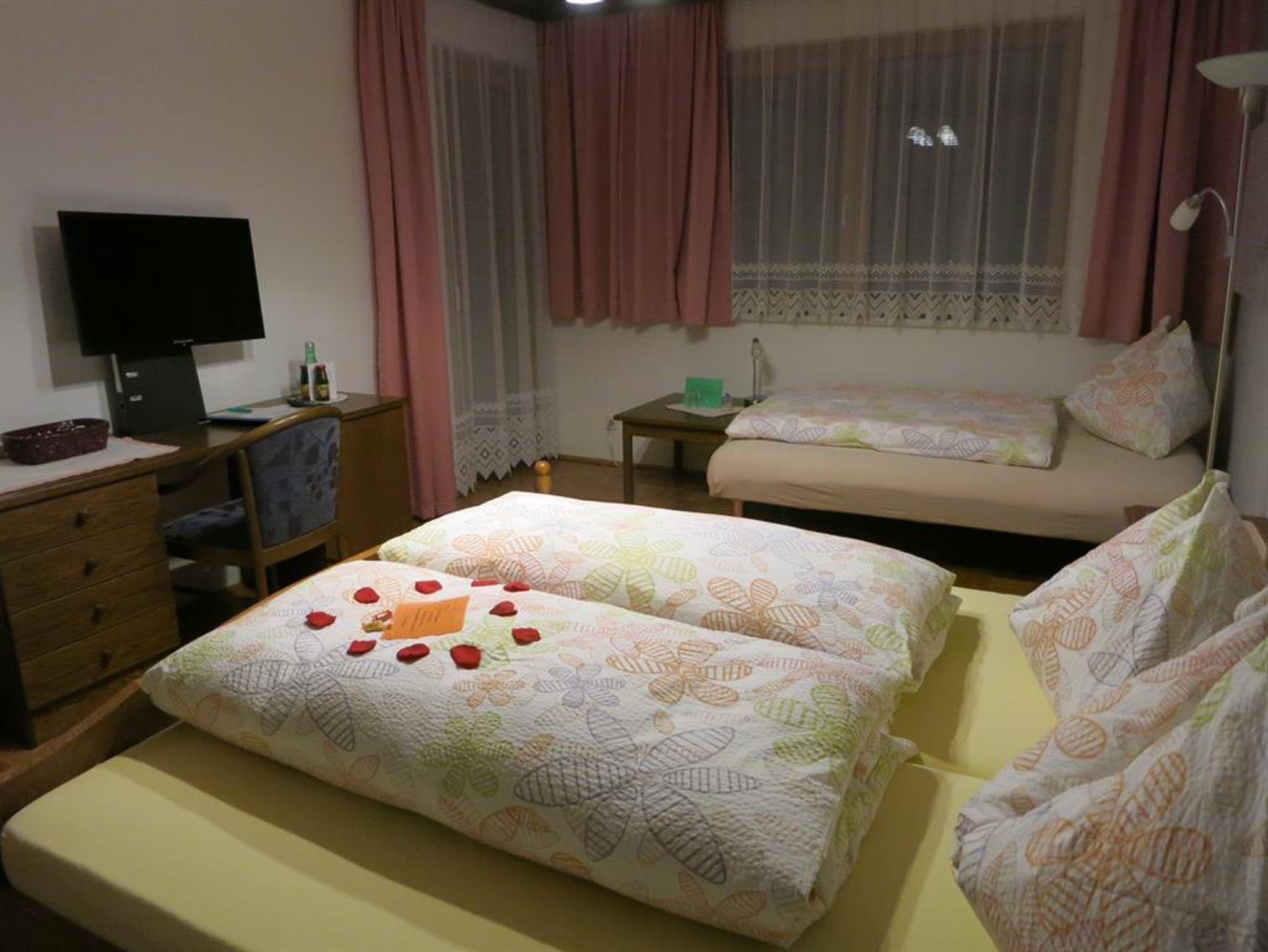 Moderne, helle Komfortzimmer für 2 Personen, mit Balkon der viel Ausblick auf Ihre Urlaubsumgebung bietet. Helle, moderne Bäder mit D/WC mit Fenster. Gemütliche, sehr geräumige u. gepflegte Zimmer mit Schreibtisch, Telefon, SAT-TV und Radio.