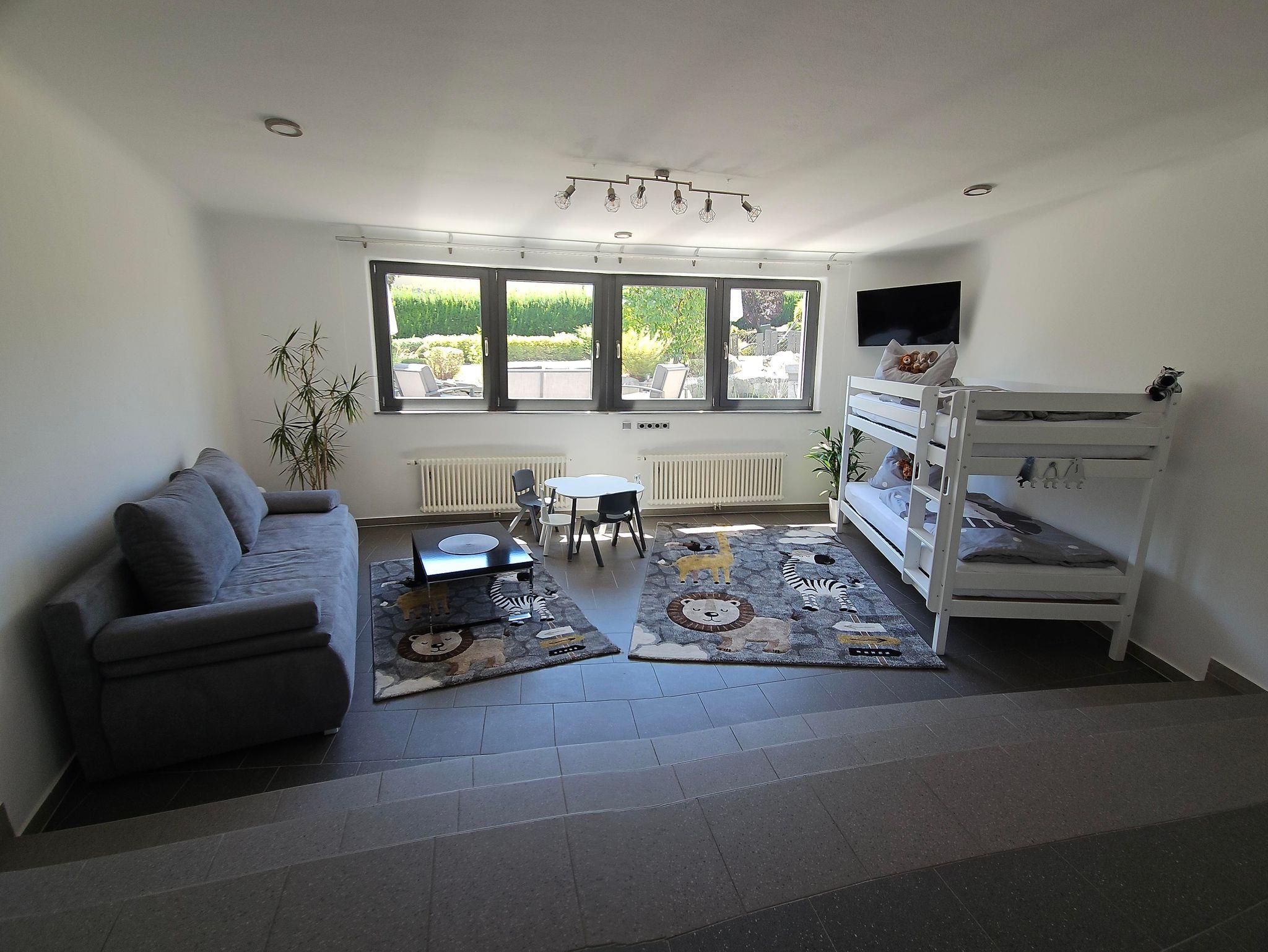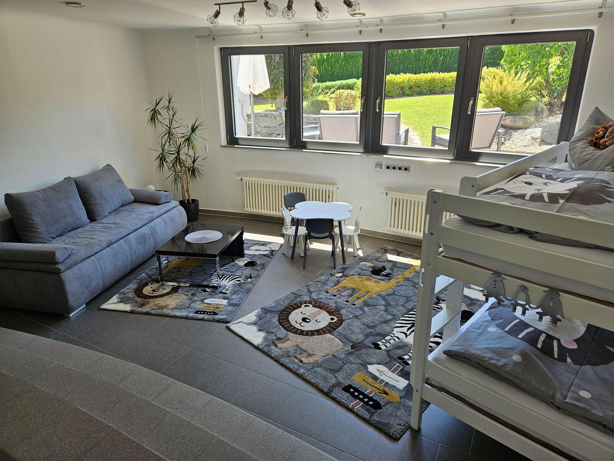 Das Appartement liegt im Obergeschoss, die große Ferienwohnung im Untergeschoss eines Einfamilienhauses. Beide Wohnungen sind jeweils mit einer Wohnküche, Sat-TV, kostenlosem Internetzugang W-LAN und Grill ausgestattet. Die Dachterrasse im OG, und die Terrasse inkl. Gartennutzung im UG-Bereich sind getrennt und stehen nur den jeweiligen Gästen allein zur Verfügung. Kostenlose Autoabstellplätze sind vorhanden.