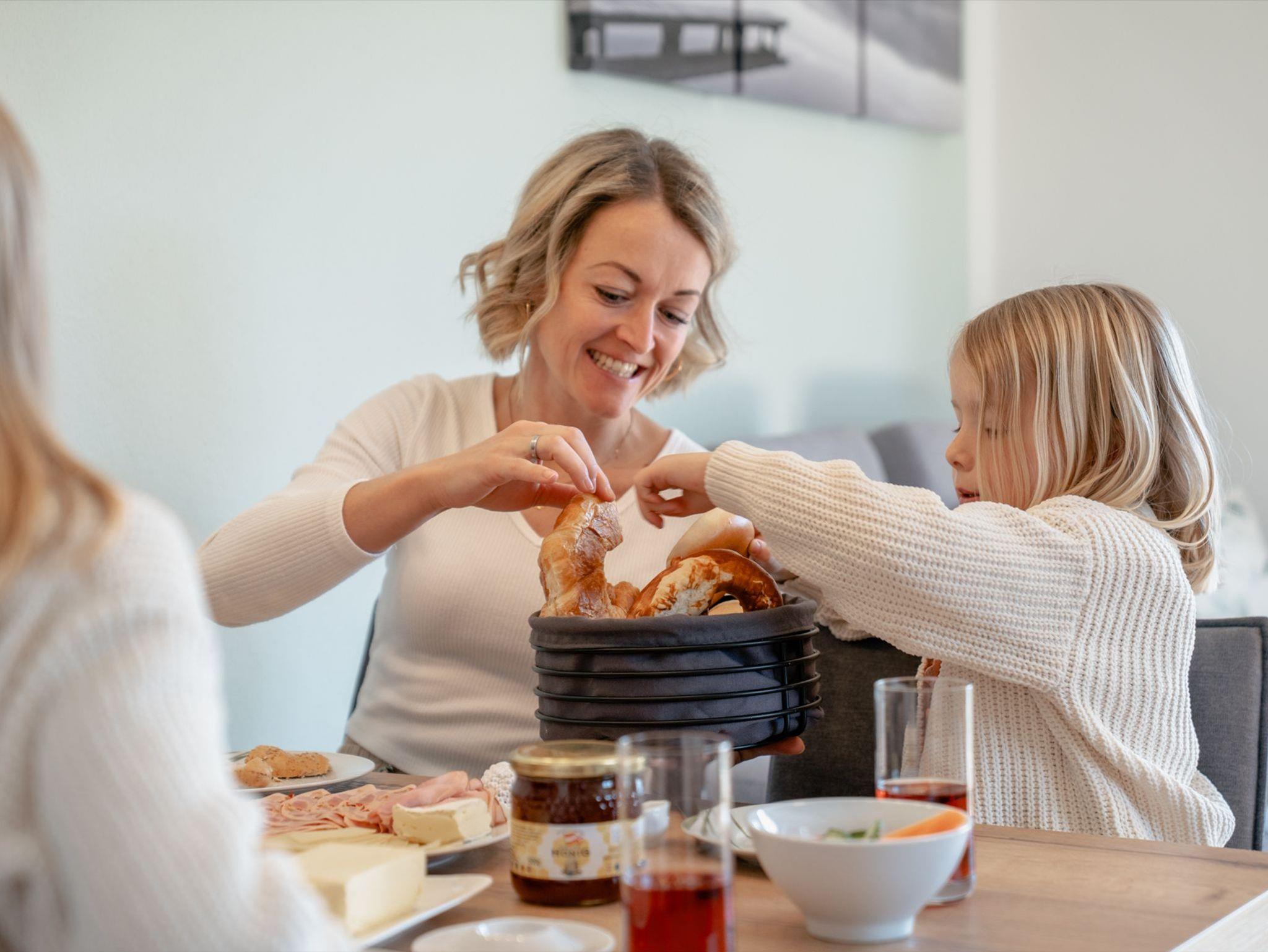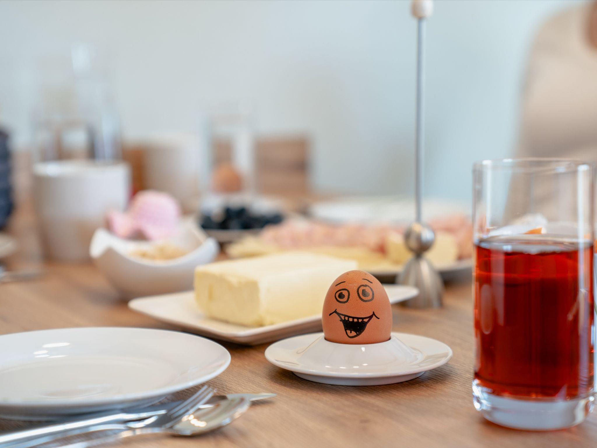 Als Selbstversorger genießt ihr euer Frühstück genau so, wie ihr es mögt ? ob mit frischen Eiern von unseren glücklichen Wanderhühnern, knusprigem Brot vom Bäcker oder hausgemachten Köstlichkeiten aus unserem Hofladen. Kein fester Zeitplan, kein Stress ? einfach genießen!
