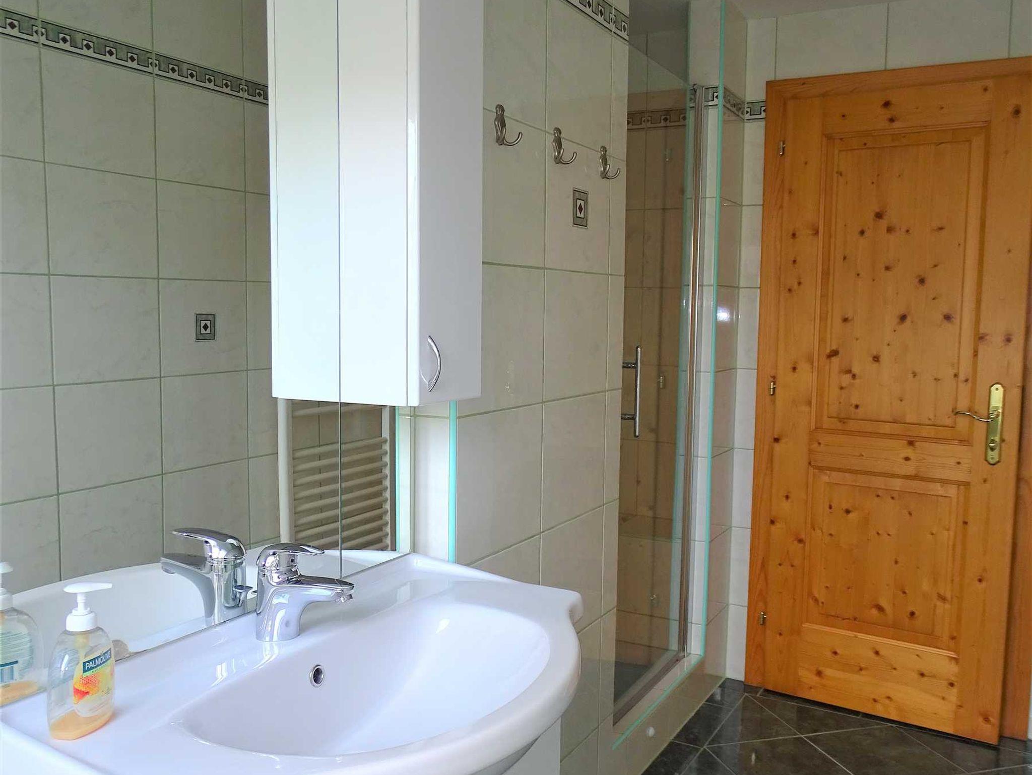 Das Badezimmer bietet ausreichend Platz für eure persönlichen Utensilien. Frische Handtücher und ein Haartrockner sind selbstverständlich vorhanden.