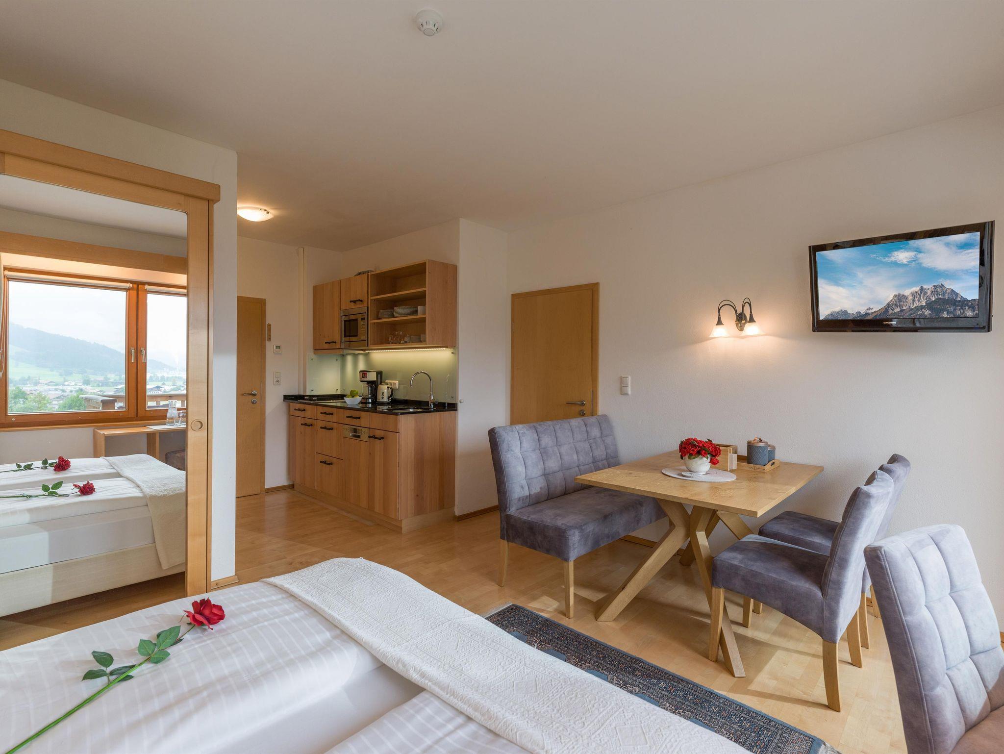 Gartenhotel Rosenhof bei Kitzbühel, Studio mit Küche & Balkon im Gartenhotel Rosenhof