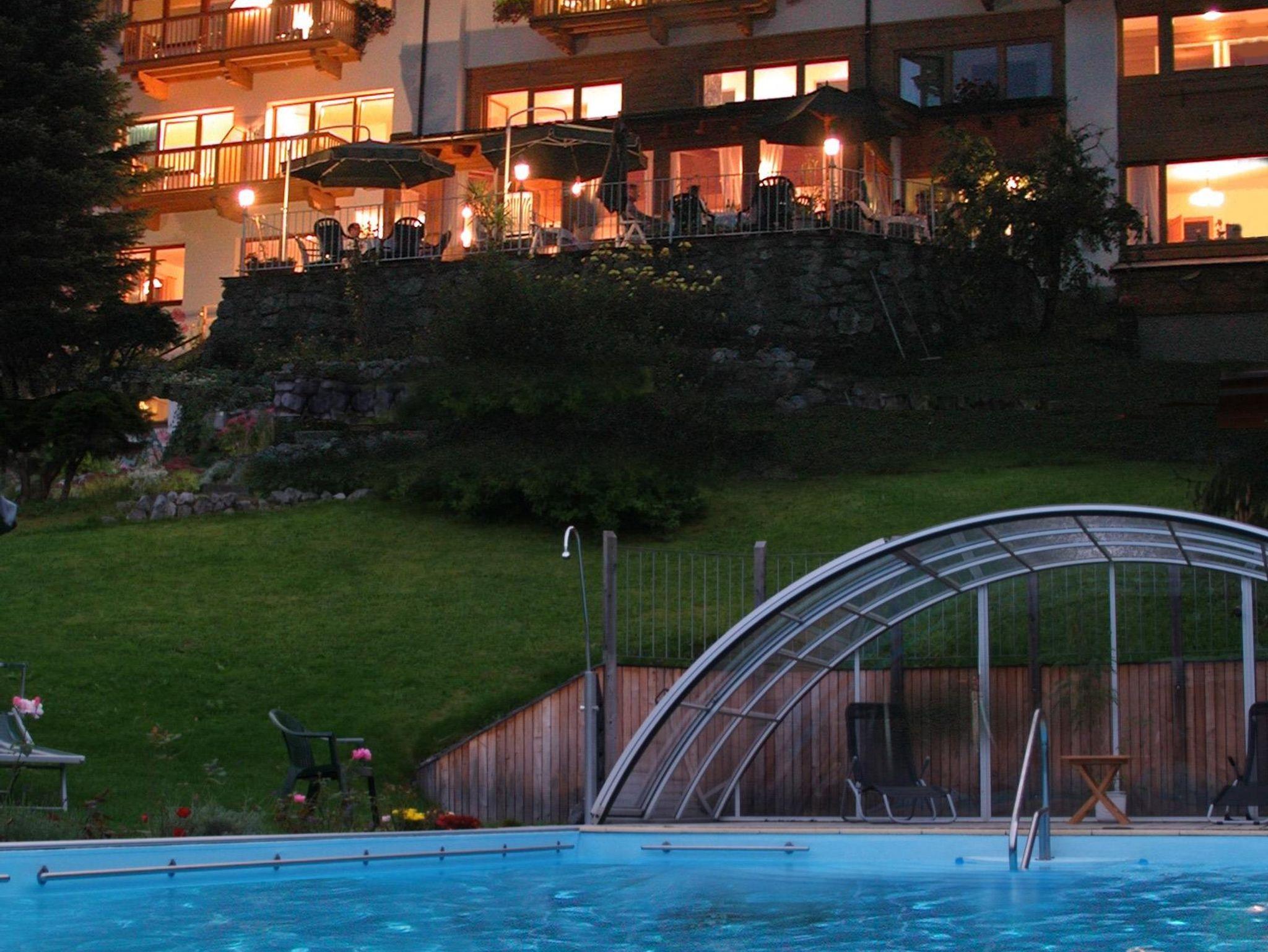 ? Beheizten Outdoor-Pool mit Unterwasser-Beleuchtung und Panorama-Schiebehalle, der selbst bei regnerischem Wetter ein Badeerlebnis ermöglicht