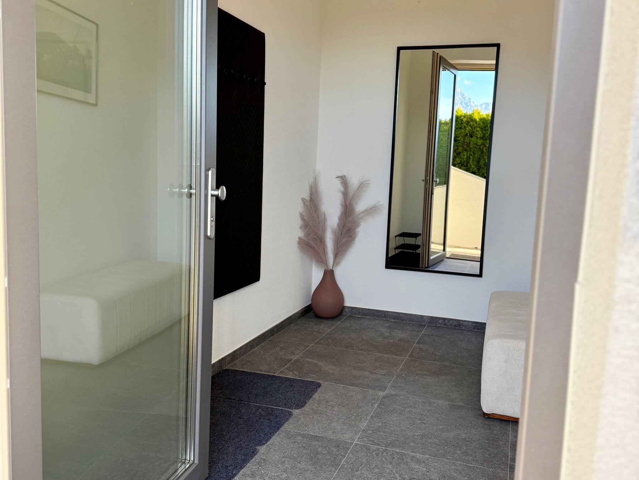 2 Schlafzimmer, 2 Bäder mit Dusche und WC, Wohnzimmer mit Schlafcouch, Wohnküche, Vorraum (Garderobe), Abstellraum, Terrasse, Garten, Carport für 2 Auto + Parkplatz