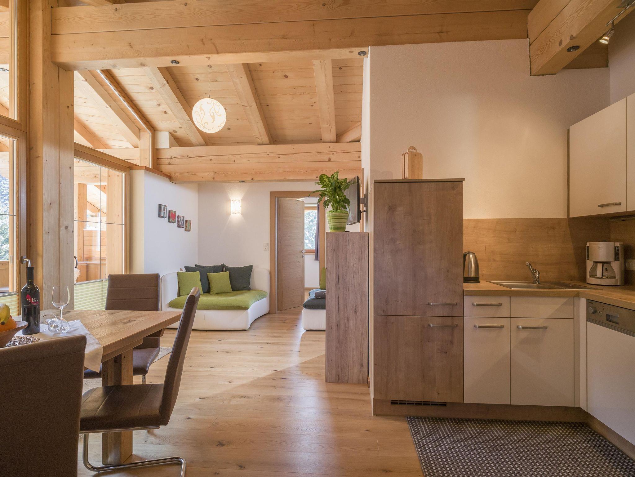 • In den Geräumigen und komfortablen Ferienwohnungen aus ZIRBENHOLZ finden Sie alles, was Sie für einen erholsamen Aufenthalt benötigen. Die Wohnungen sind mit Sichtdachstuhl und je zwei Balkone.