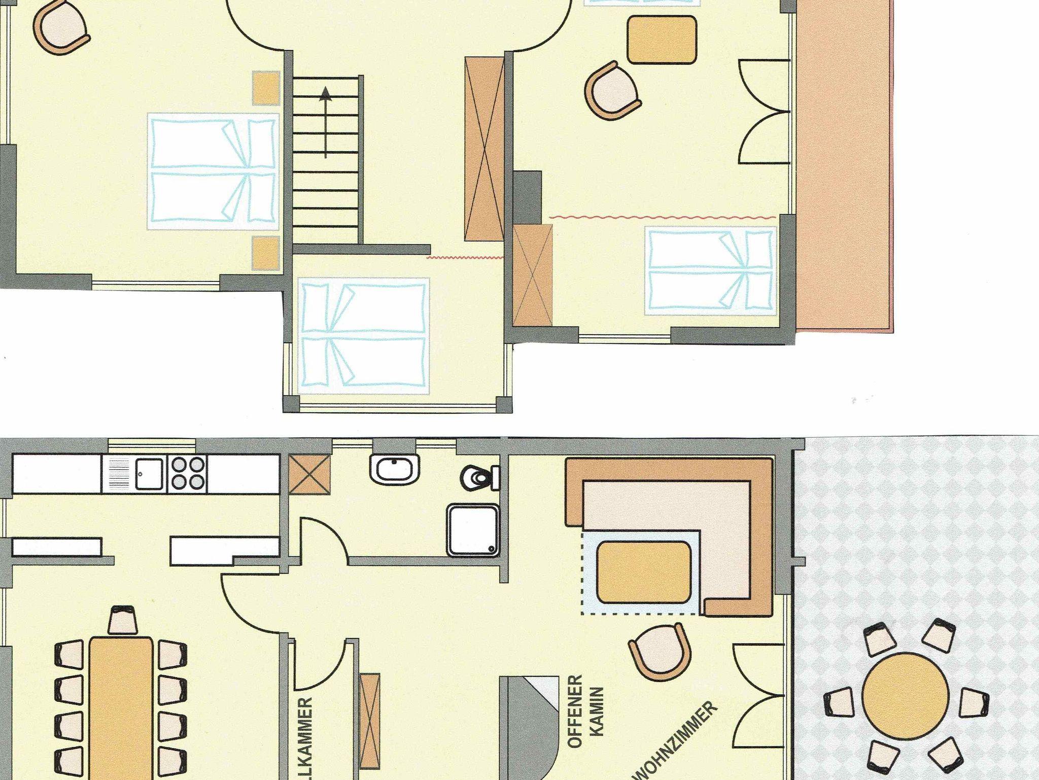 • 1 franz. Bett, wenn man die Treppe hinauf kommt