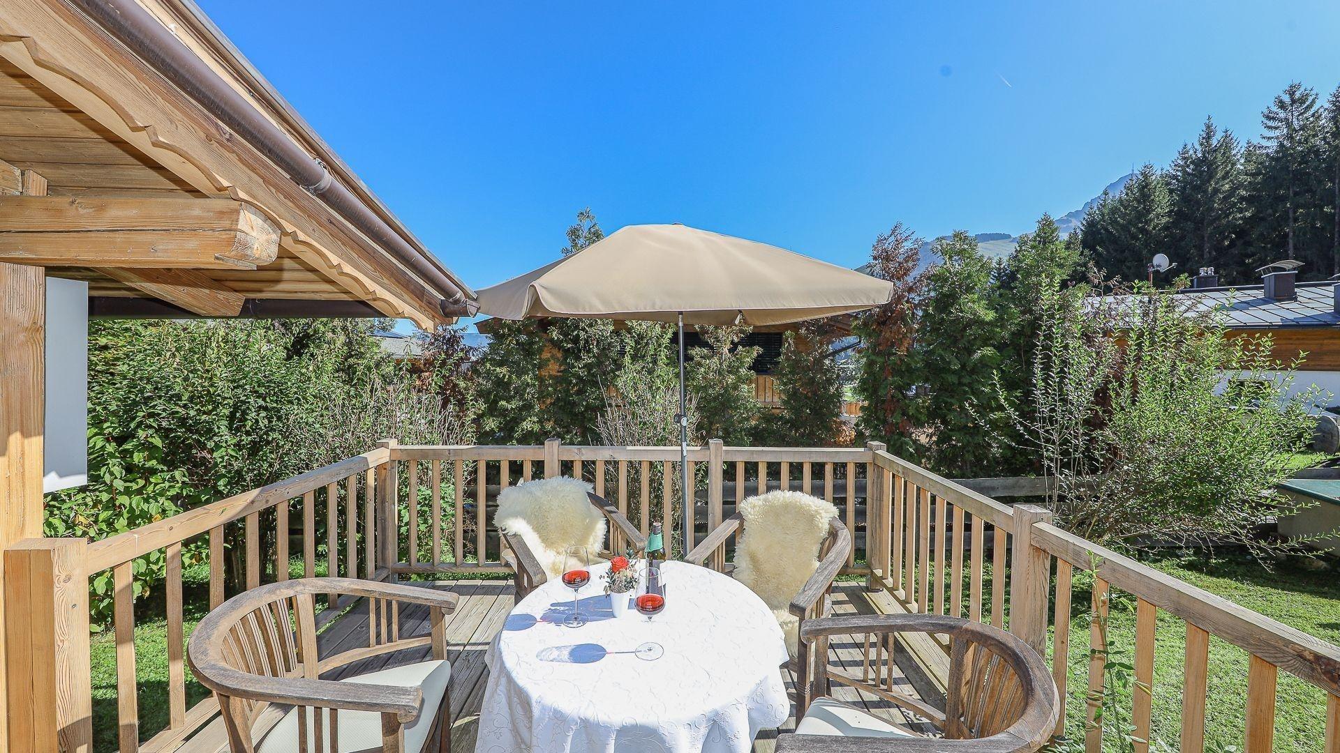 ? Frühstücke auf unserer schönen Terrasse unter freiem Himmel mit herrlichem Bergblick