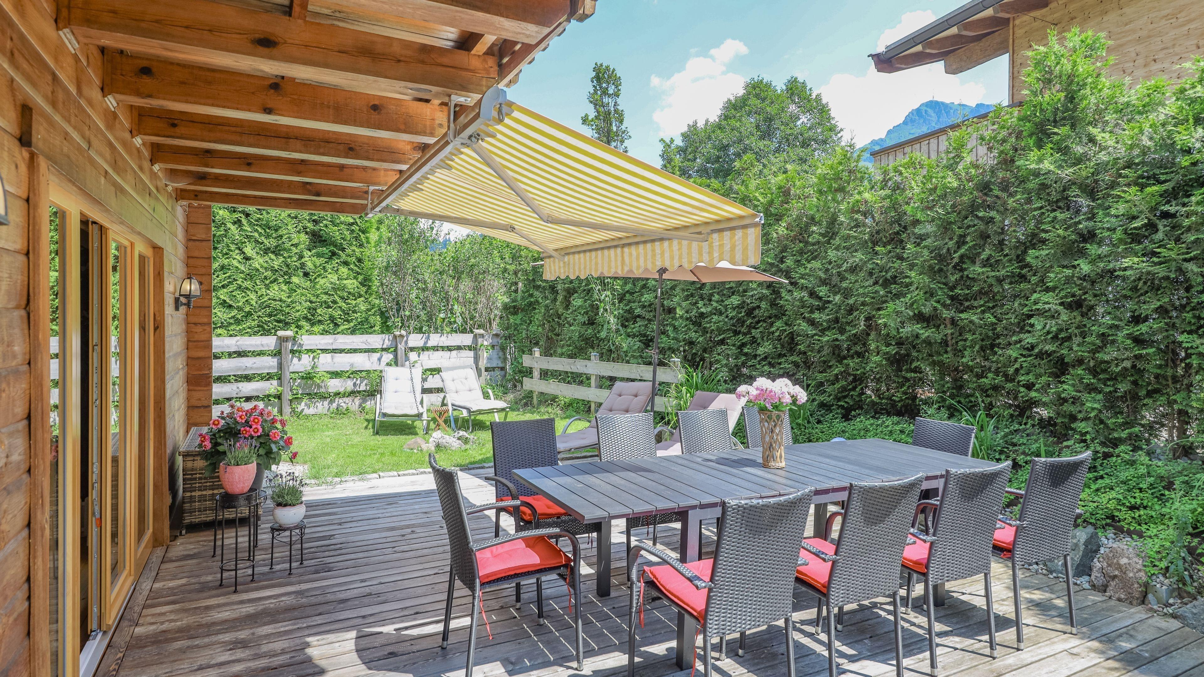? Frühstücke auf unserer schönen Terrasse unter freiem Himmel mit herrlichem Bergblick