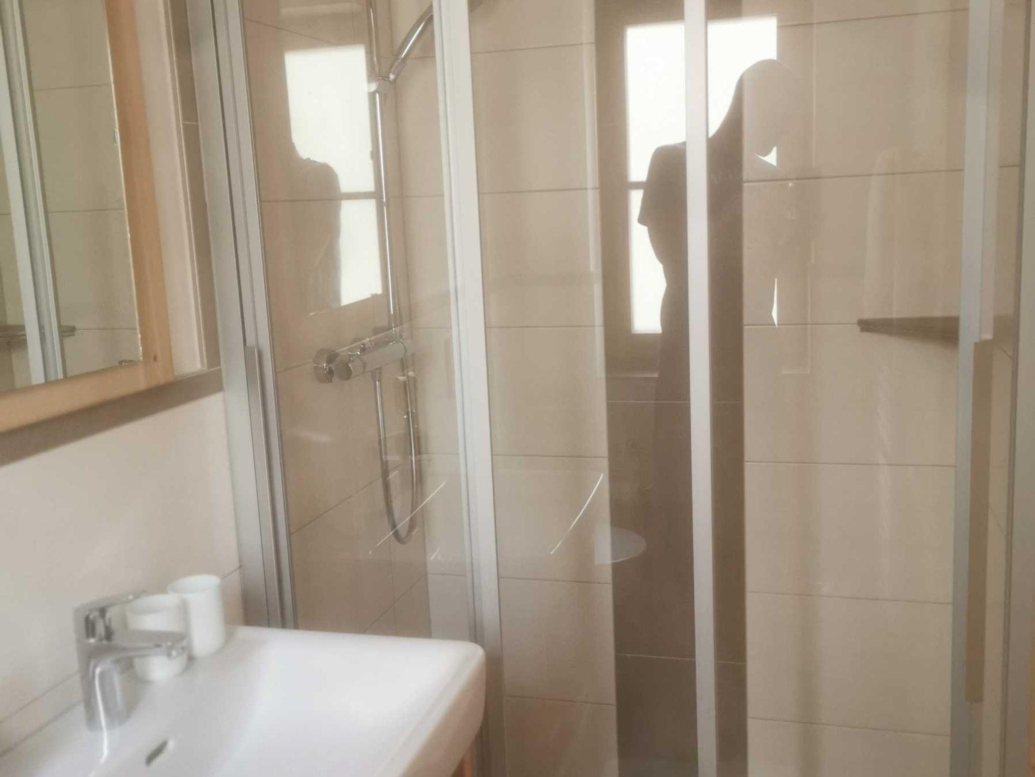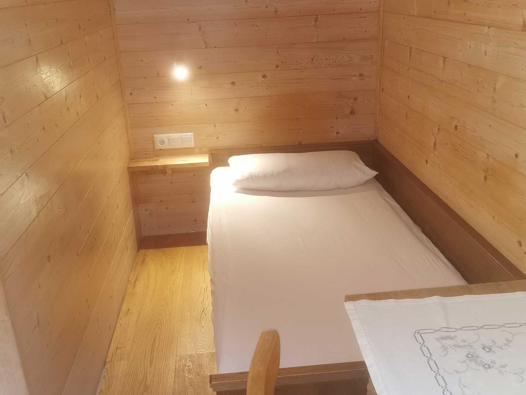 Die Wohnung ist mit einem Schlafzimmer, WC und Dusche und einer separaten Wohnküche ausgestattet. Sie ist geräumig und bietet einen schönen Blick Richtung Golzentipp.