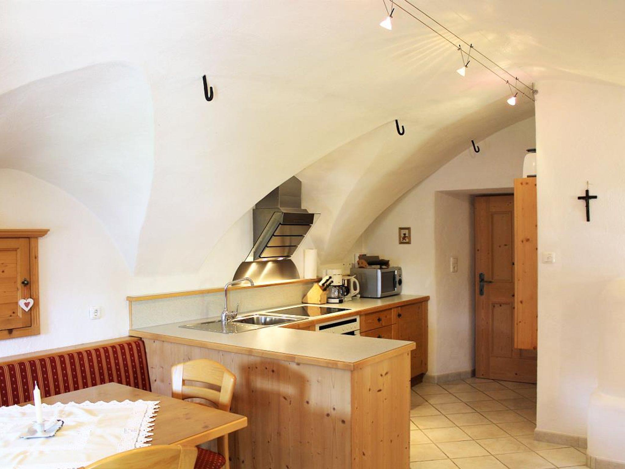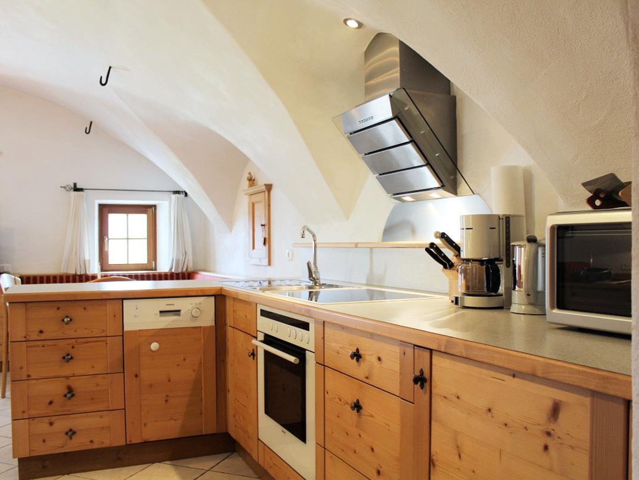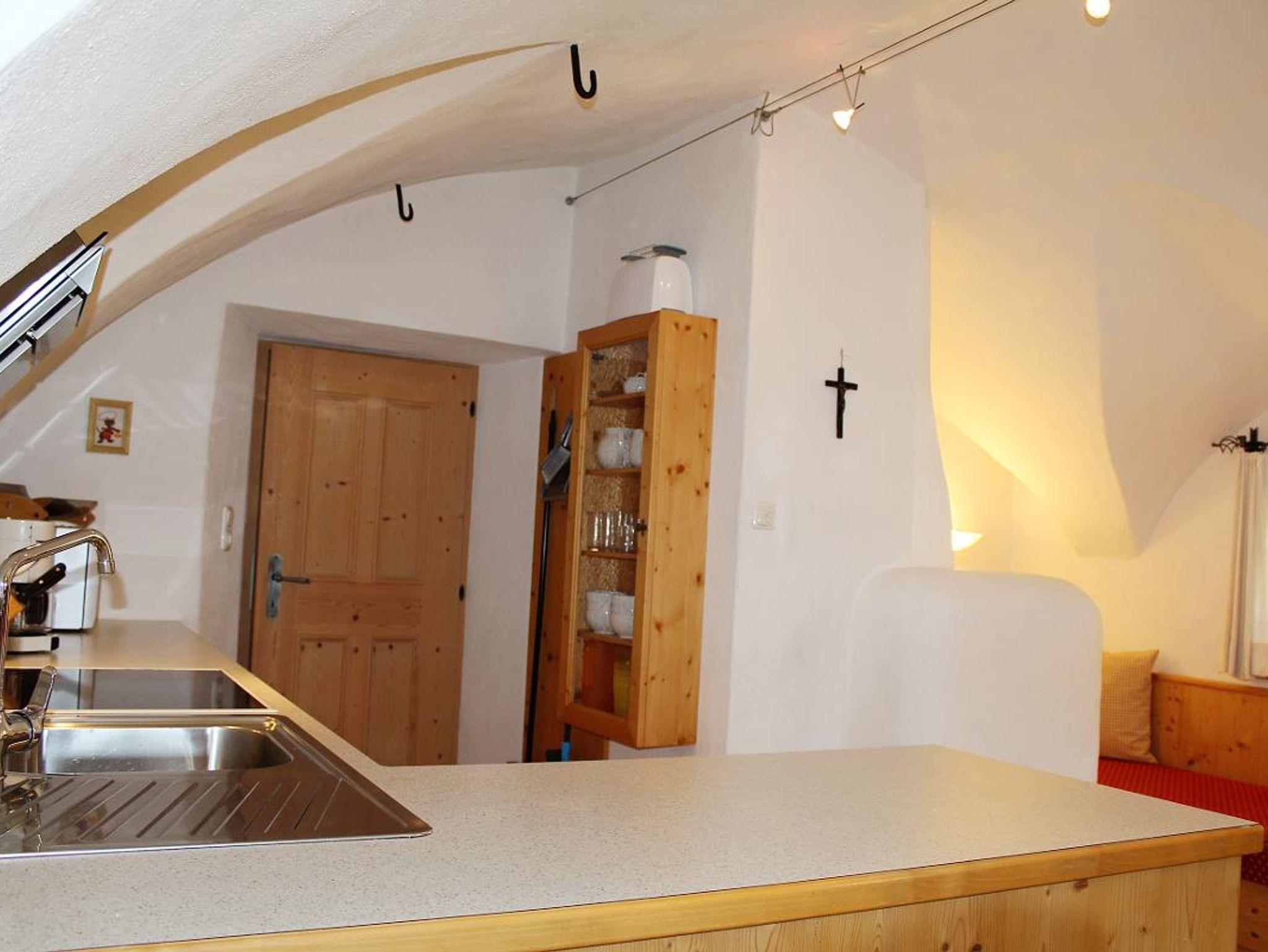 Kleines Haus mit Geschichte, viel Holz und Naturmaterialien sorgen für Gemütlichkeit und Komfort. Der Hit: Platz am Ofen in der Wohnküche. Im Schlafzimmer führt eine Treppe nach oben zu den beiden Einzelbetten (Umbaumöglichkeit zum Kinderbett).