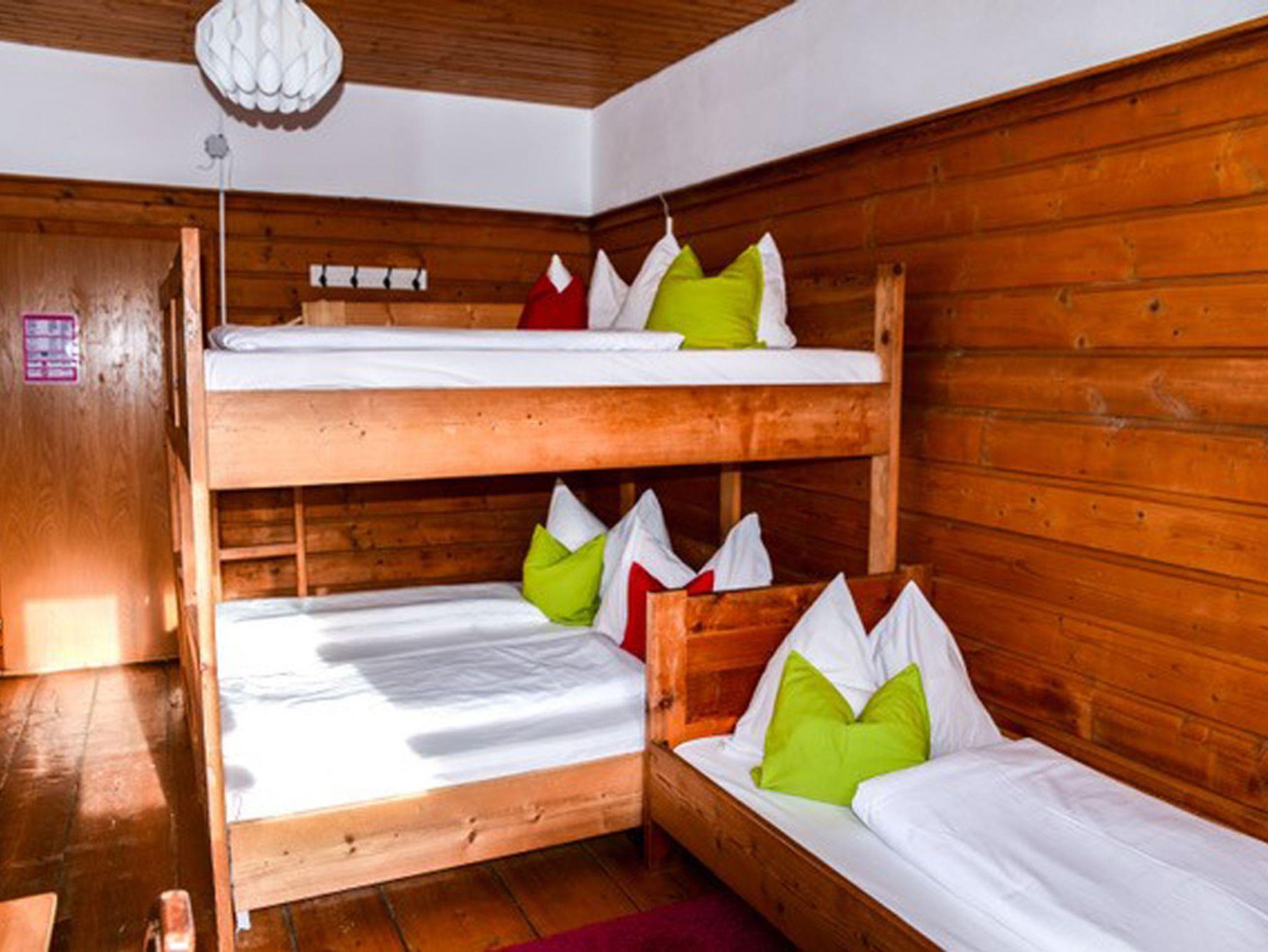 Urig-typisches Berghüttenzimmer mit einem Doppel-Stockbett und einem Einzelbett ausgestattet. Ideal für Familien und Gruppen. Es gibt einen allgemeinen Waschraum mit zwei Duschen im Erdgeschoss. WCs sind im EG und im 1. Stock. Auch Belegung mit weniger als 5 Personen möglich. Frühstücksbuffet und Abendessen (Buffet) zubuchbar. Tagsüber a-la-carte.