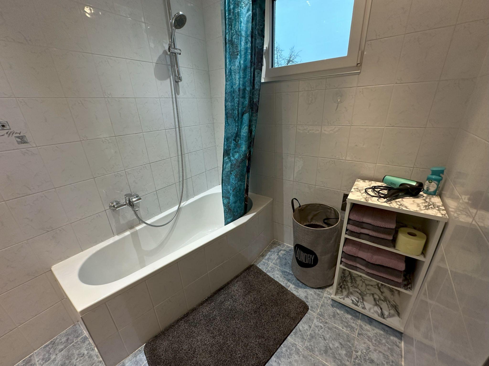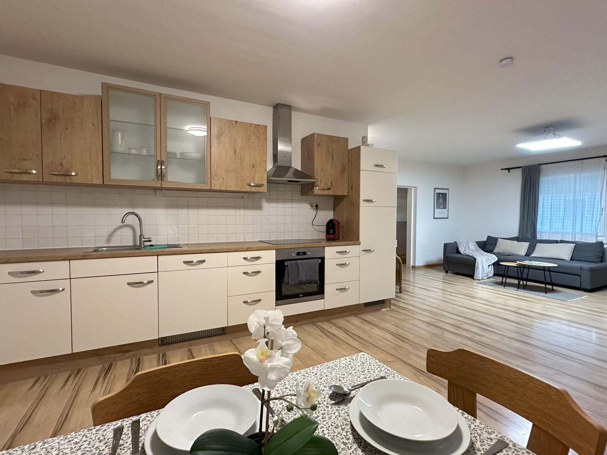 3-room house 100 m2. Spacious and bright, fully renovated in 2017, modern and cosy furnishings: large entrance hall. Exit to the garden, to the terrace, to the loggia. Open large living/dining room with 1 sofabed and 1 double sofabed (140 cm, length 190 cm), satellite TV and flat screen. 1 small double bedroom. Large, open kitchen (oven, dishwasher, 4 ceramic glass hob hotplates, freezer, electric coffee machine) with dining nook. Bath/WC. Wooden floors. Terrace roofed, south facing position, large garden. Terrace furniture. View of the countryside. Facilities: Internet (WiFi, free). Please note: suitable for families. Non-smoking house. Maximum 1 pet/ dog allowed. Smoke alarm.