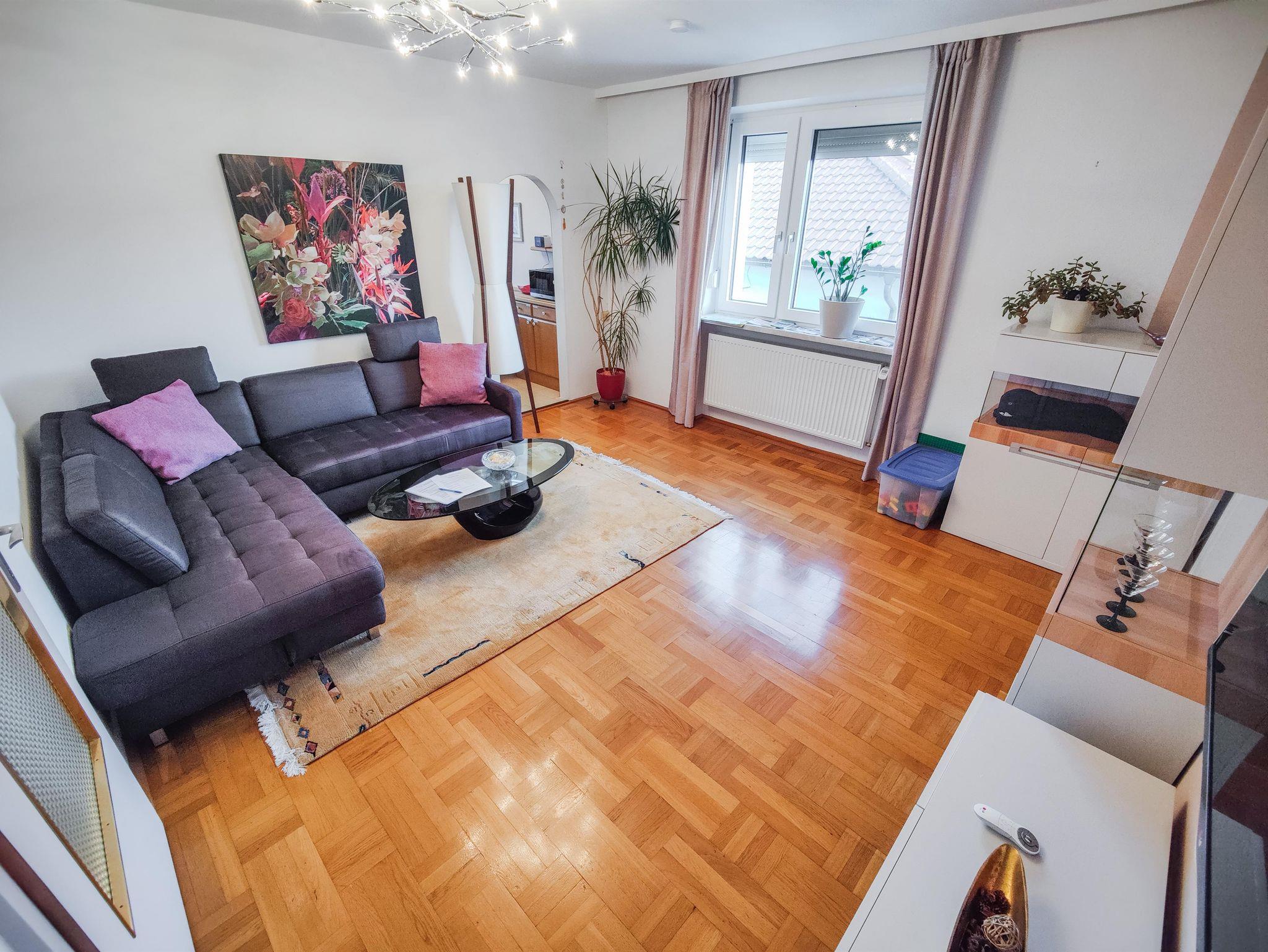 Unsere Ferienwohnung im 1.OG liegt sehr zentral zwischen Einkaufszentrum (Supermärkte, Alltagsgegenstände, Apotheke, Bäckerei, etc.) sowie öffentlichen Verkehrsmittel (schnelle Anbindung nach Linz). Die Ferienwohnung verfügt über zwei Schlafzimmer (Doppelbett, Französisches Bett), ein Wohnzimmer, Bad und seperates WC sowie vollausgestattete Küche. In unserem großen eingezäuntem Garten mit beheizten Pool können wir eine Oase zum wohlfühlen und erholen anbieten.