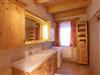 Geräumiges Badezimmer (7 m²) mit Doppelwaschtisch, Spiegelschrank, Waschmaschine, Dusche, Fön, Handtücher und Bademäntel.
