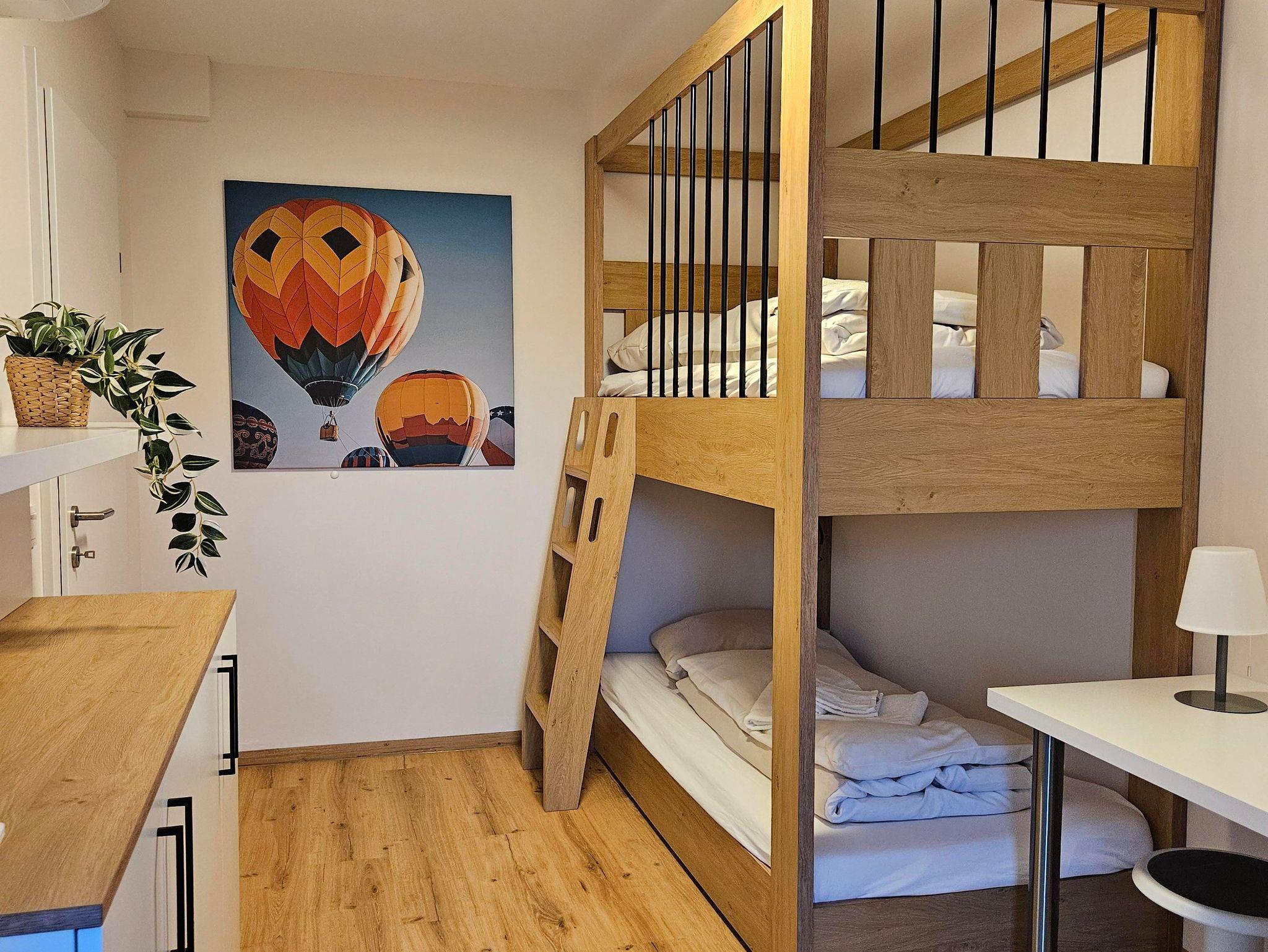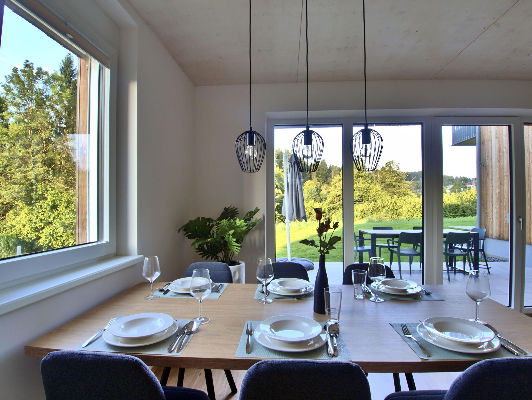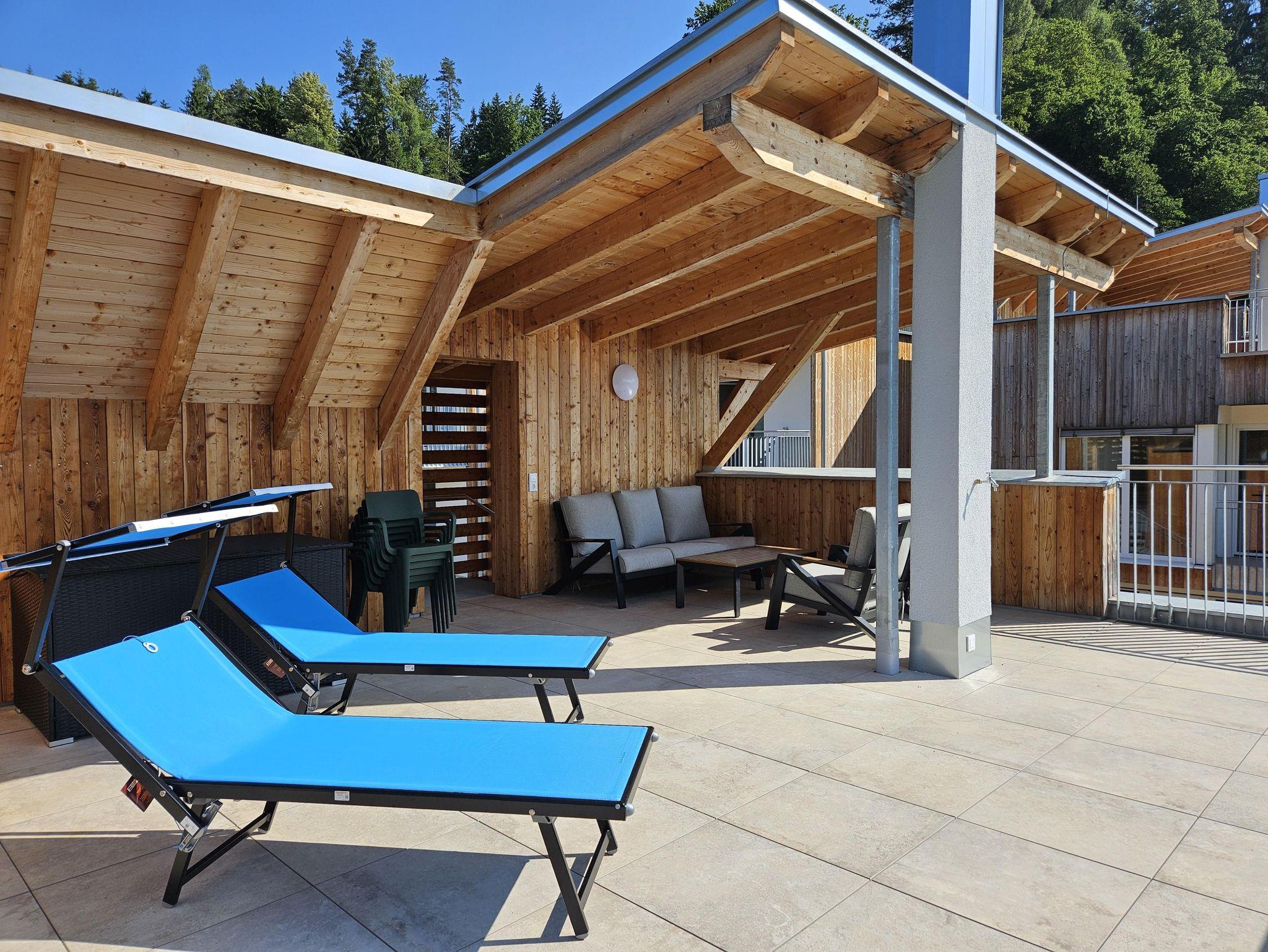 Gemütliche Holz-Lodges verbunden mit moderner, hochwertiger Ausstattung; ruhig mitten im Grünen und gleichzeitig seid ihr in wenigen Minuten direkt am Wörthersee. Auf 60m² Wohnfläche erwartet euch ein lichtdurchfluteter Wohn-Essbereich mit moderner, voll ausgestatteter Küche – ideal für gemeinsame Kochabende mit Familie oder Freunden. Die Küche lässt keine Wünsche offen. Zwei gemütliche Schlafzimmer – eines mit Doppelbett, das andere mit einem praktischen Hochbett – sowie eine bequeme Schlafcouch im Wohnzimmer bieten Platz für bis zu sechs Personen. An sonnigen Tagen genießt ihr eure Mahlzeiten auf eurer eigenen Terrasse mit kleinem Garten. Und wenn der Tag langsam ausklingt, wartet schon ein besonderes Highlight auf euch: die 50 qm große, private Dachterrasse mit gemütlichen Loungemöbeln. Hier seid ihr ungestört, vor Blicken geschützt – und der Sternenhimmel gehört ganz euch.