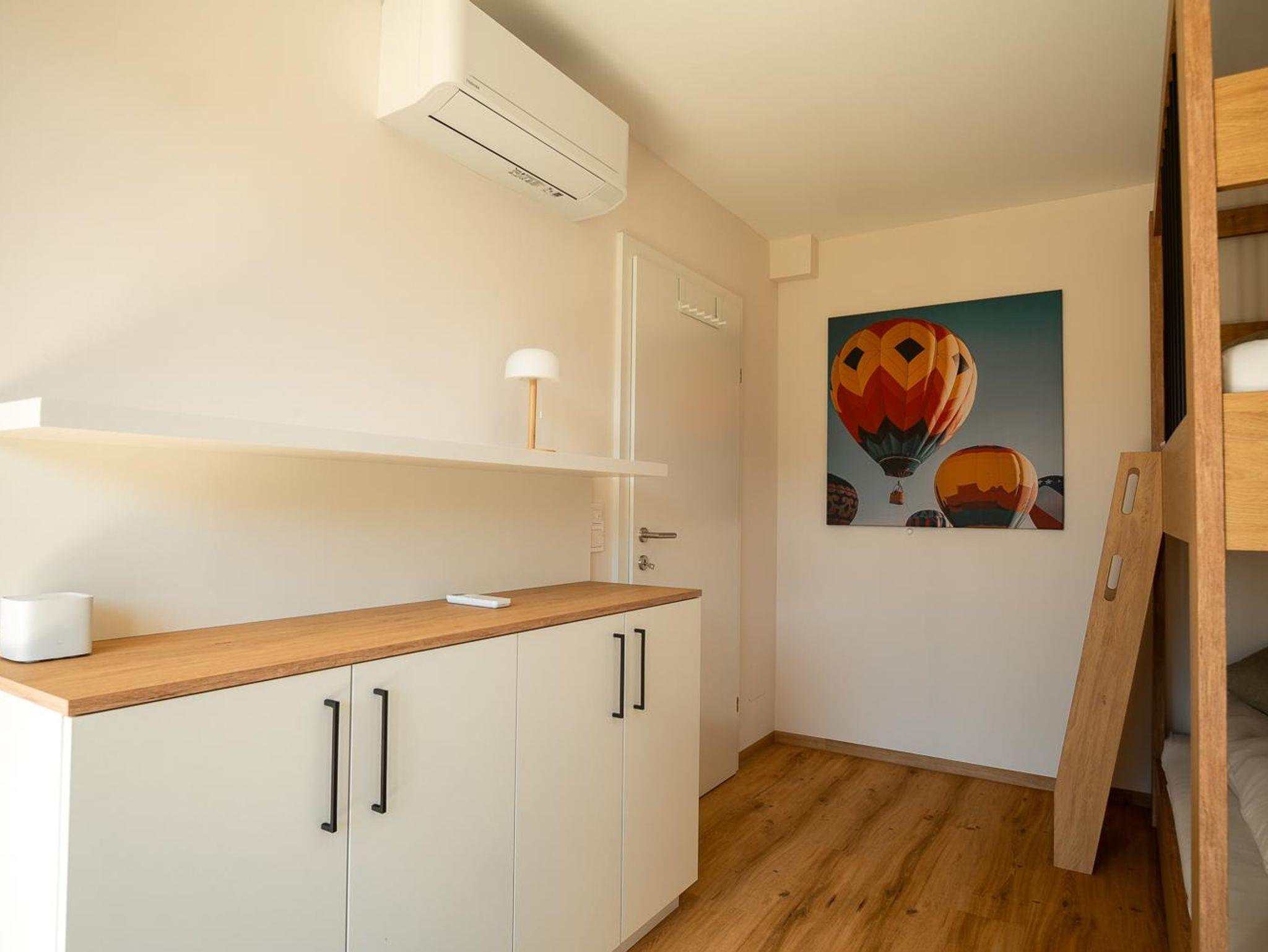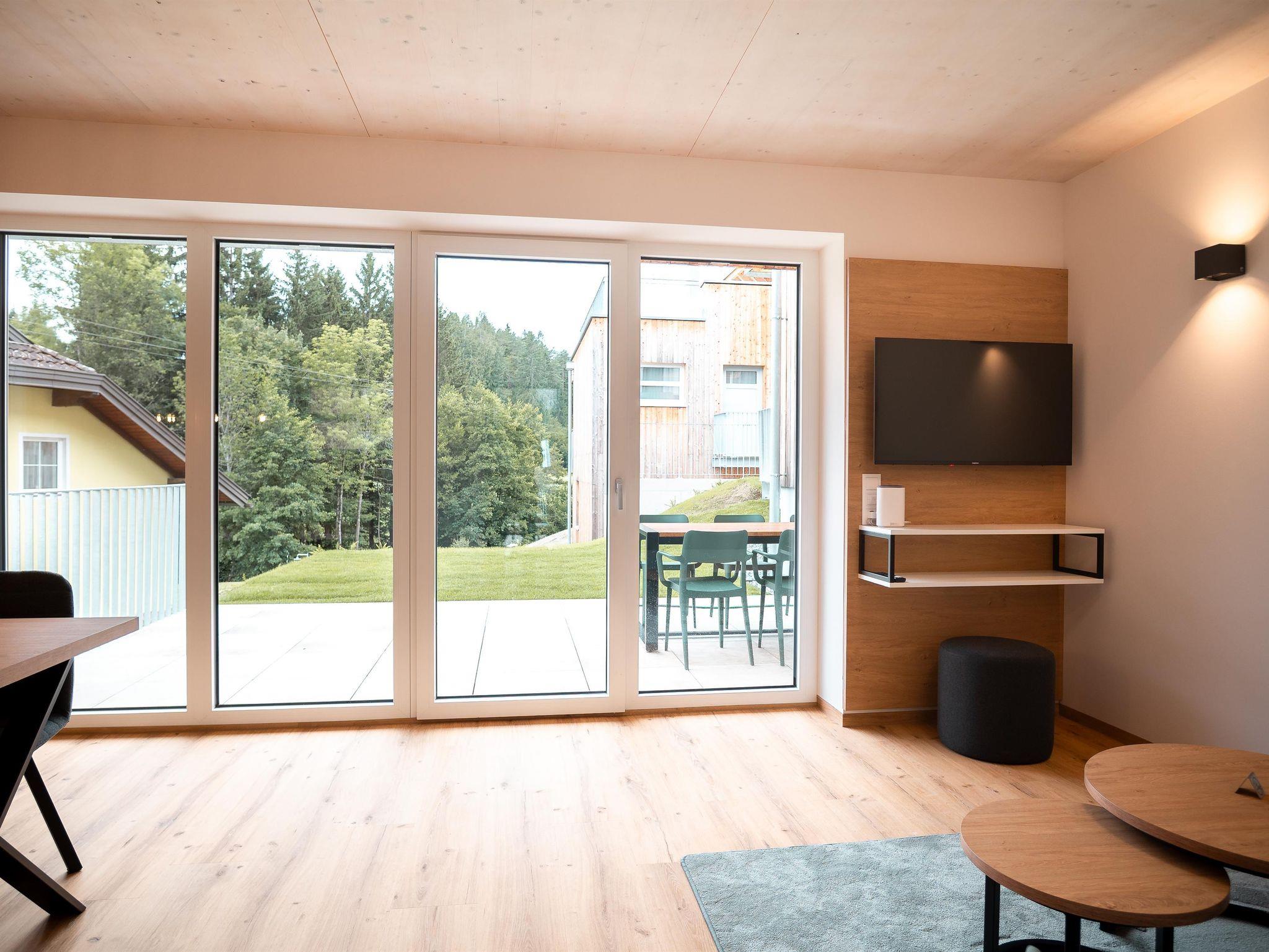 Gemütliche Holz-Lodges verbunden mit moderner, hochwertiger Ausstattung; ruhig mitten im Grünen und gleichzeitig seid ihr in wenigen Minuten direkt am Wörthersee. Auf 60m² Wohnfläche erwartet euch ein lichtdurchfluteter Wohn-Essbereich mit moderner, voll ausgestatteter Küche – ideal für gemeinsame Kochabende mit Familie oder Freunden. Die Küche lässt keine Wünsche offen. Zwei gemütliche Schlafzimmer – eines mit Doppelbett, das andere mit einem praktischen Hochbett – sowie eine bequeme Schlafcouch im Wohnzimmer bieten Platz für bis zu sechs Personen. An sonnigen Tagen genießt ihr eure Mahlzeiten auf eurer eigenen Terrasse mit kleinem Garten. Und wenn der Tag langsam ausklingt, wartet schon ein besonderes Highlight auf euch: die 50 qm große, private Dachterrasse mit gemütlichen Loungemöbeln. Hier seid ihr ungestört, vor Blicken geschützt – und der Sternenhimmel gehört ganz euch.