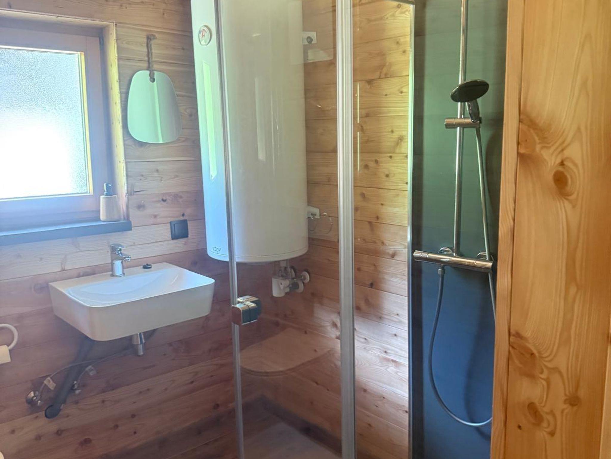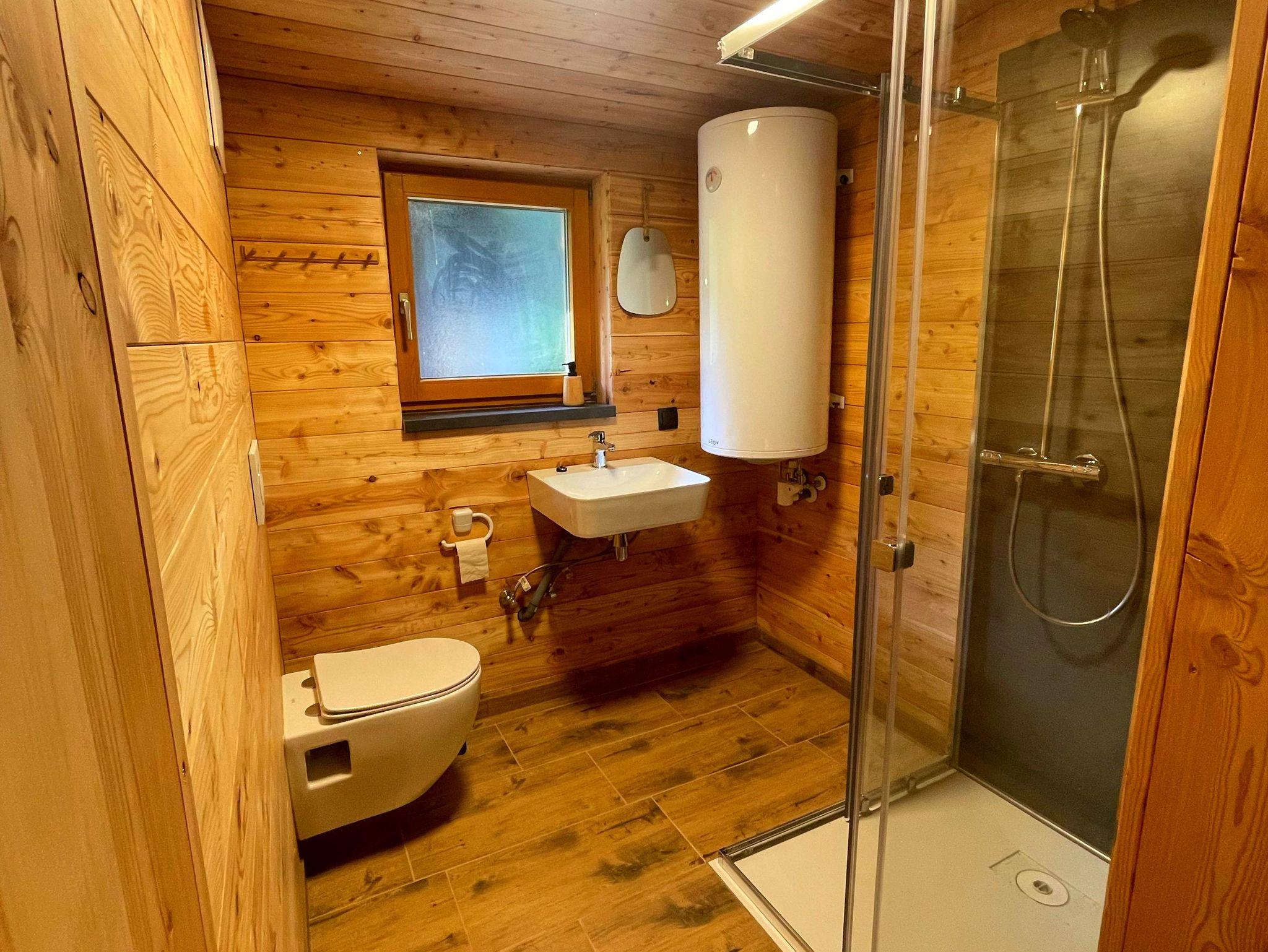 Das neu renovierte Badezimmer ist mit Dusche und WC ausgestattet. In der modernen Küche finden Sie alles, was Sie für die Selbstversorgung benötigen. Die Hütte kann elektrisch oder mit Holz geheizt werden. Der Wohnbereich lädt mit Sat-TV und behaglicher Atmosphäre zum Entspannen ein.