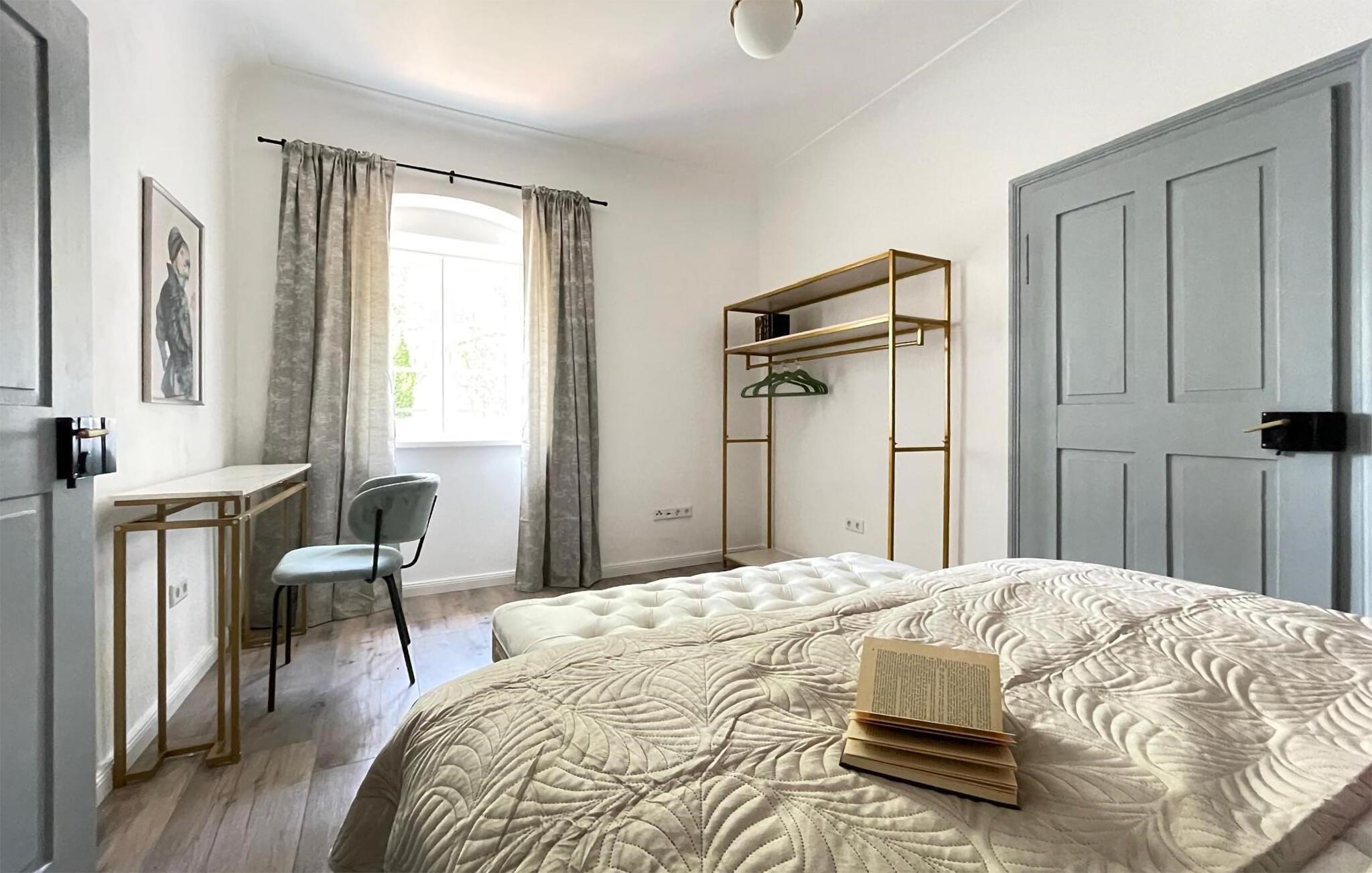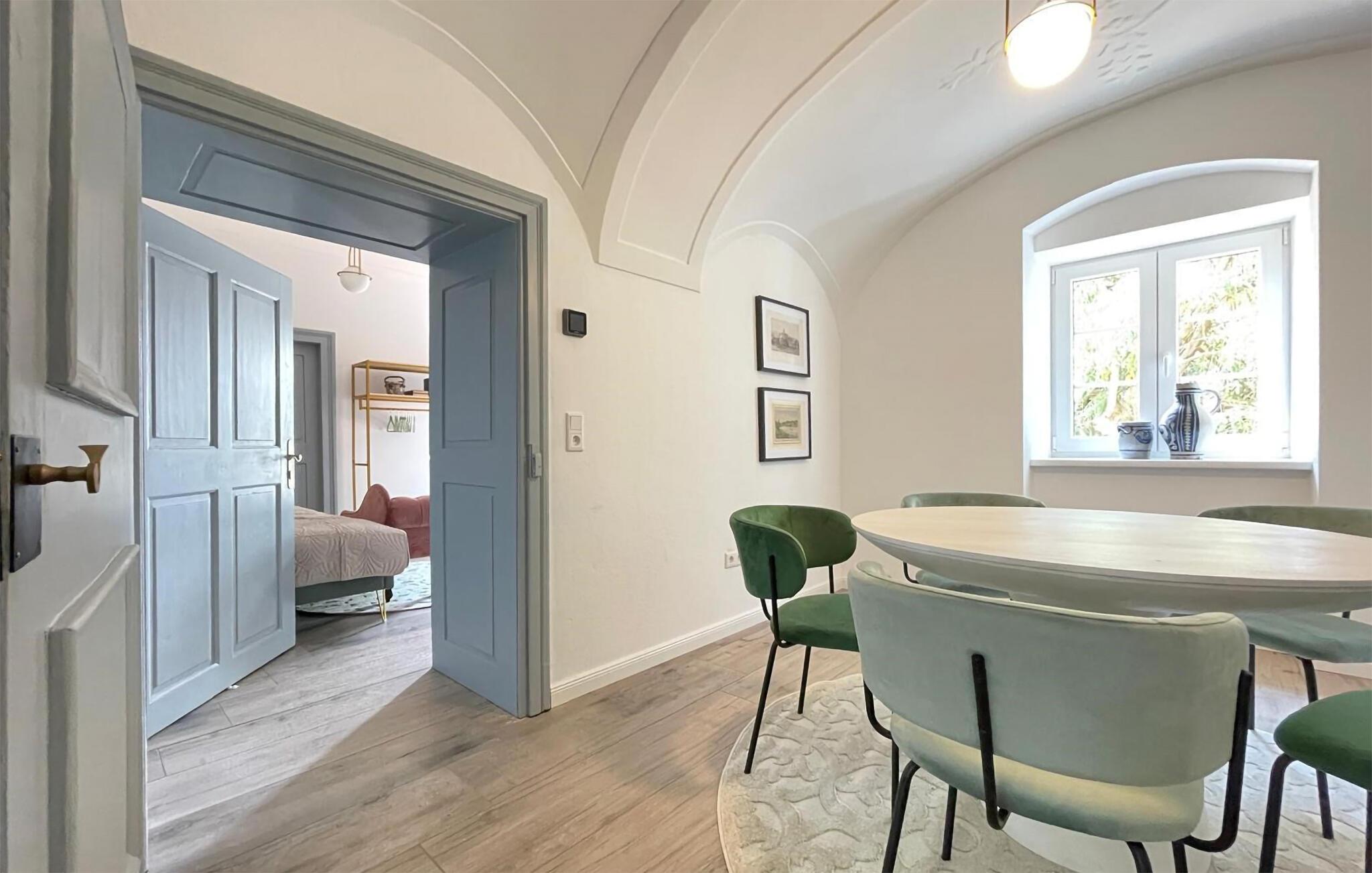 Velkommen til denne rummelige og stilfulde lejlighed i en historisk bygning ikke langt fra Donau-flodens bredder. Den hjemlige indretning og de charmerende hvælvede lofter skaber en herlig hyggeatmosfære. Slap af her efter jeres udflugter, og glæd jer til hyggelige aftener på de indbydende sofaer.
