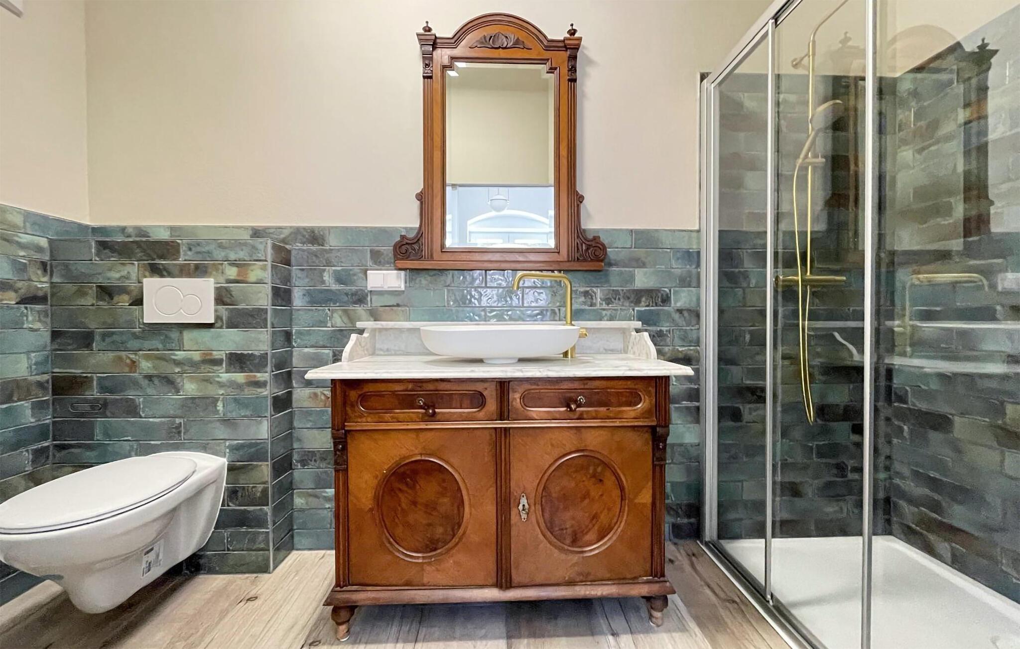 Badeværelse 6m2 (nr. 1) - WC. Varmt og koldt vand. Bruser