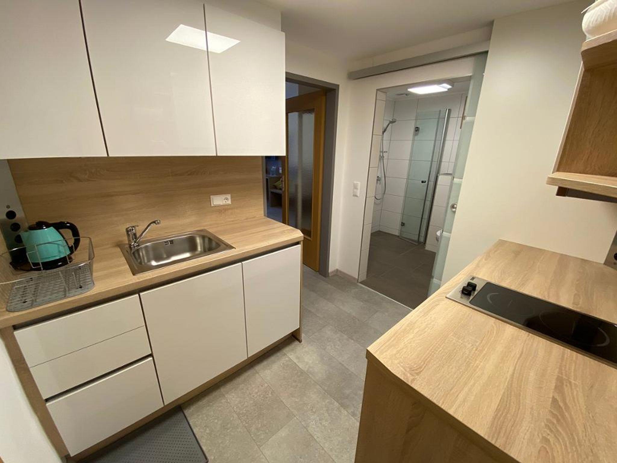 Seit Mai 2019 ist unser neu errichtetes Apartment Frühling buchbar! Das Apartment Frühling ist ein kleines gemütliches Heim mit Küche, Schlafzimmer, integrierter Essecke und Dusche/WC , heimelig und praktisch ausgestattet. Die Küche verfügt über 2 Kochplatten, Geschirrspüler, Kühlschrank mit Tiefkühlfach und ausreichendem Kochutensilien. Im modernen Schlafzimmer befindet sich ein Schreibtisch, TV, gratis W-lan, sowie eine bequeme Ecke mit Esstisch.