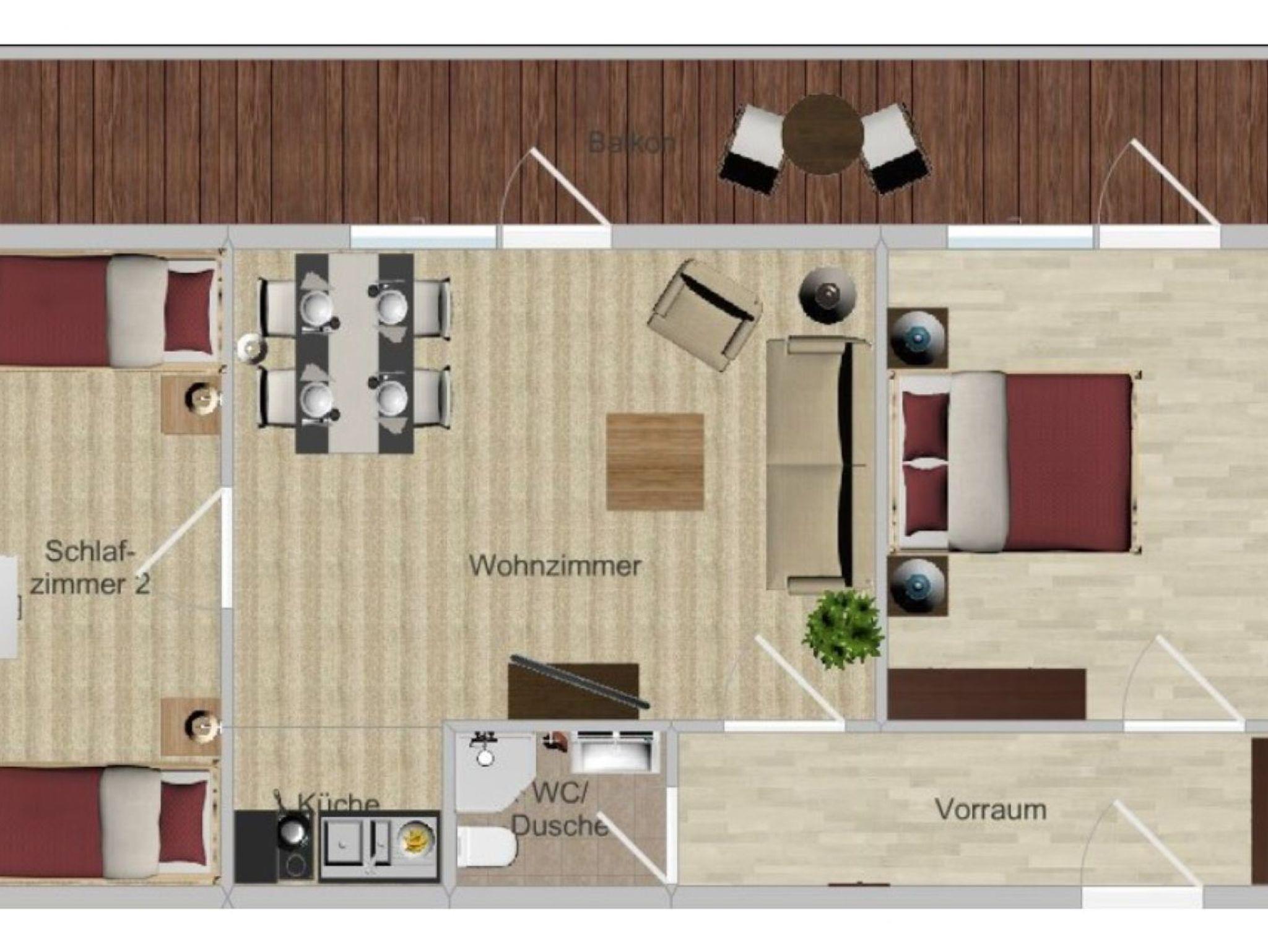 Appartement Typ D eignet sich perfekt für Paare, Familien oder Freundesgruppen, die eine komfortable und flexible Unterkunft suchen.