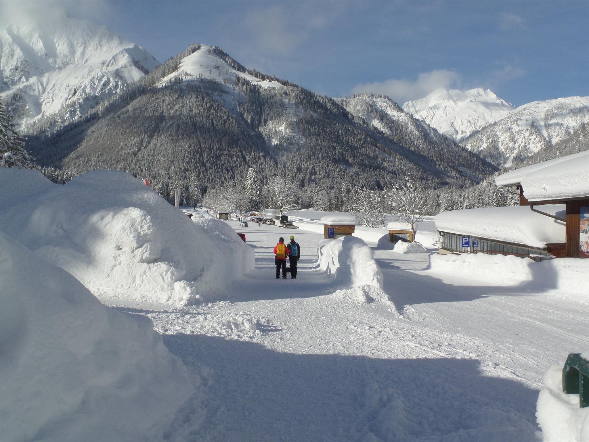 Die Winterwanderwege beginnen vor dem Haus. Der Loipeneinstieg ist gegenüber. Die Karwendelbergbahn in Sichtnähe. Wandern, Langlaufen, Schifahren, Rodeln, Schneeschuhwandern, Pferdeschlitten fahren alles ist möglich.