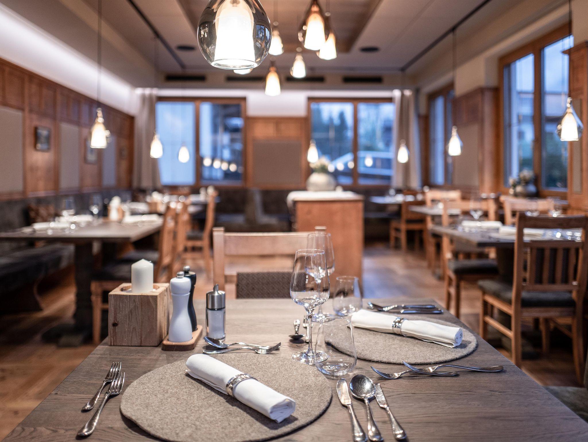 Im modernen Restaurant, Wintergarten & in der Original Tiroler Zirbenstube werden Sie mit ausgesuchten Weinen & einem 4-gängen Genussmenü kulinarisch verwöhnt – gemütliche Atmosphäre, hochwertige Produkte & Tiroler Lebensart.