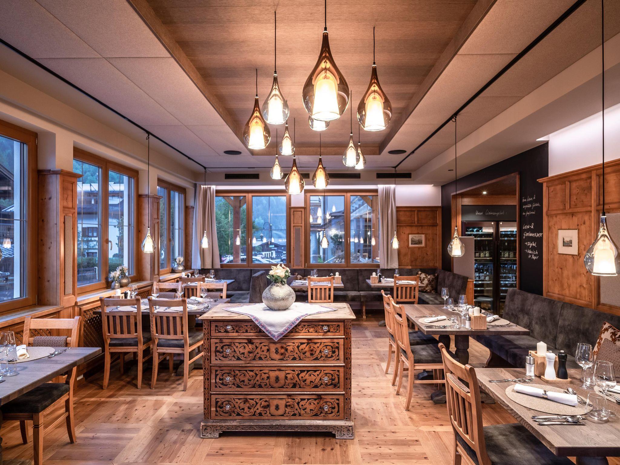Im modernen Restaurant, Wintergarten & in der Original Tiroler Zirbenstube werden Sie mit ausgesuchten Weinen & einem 4-gängen Genussmenü kulinarisch verwöhnt – gemütliche Atmosphäre, hochwertige Produkte & Tiroler Lebensart.