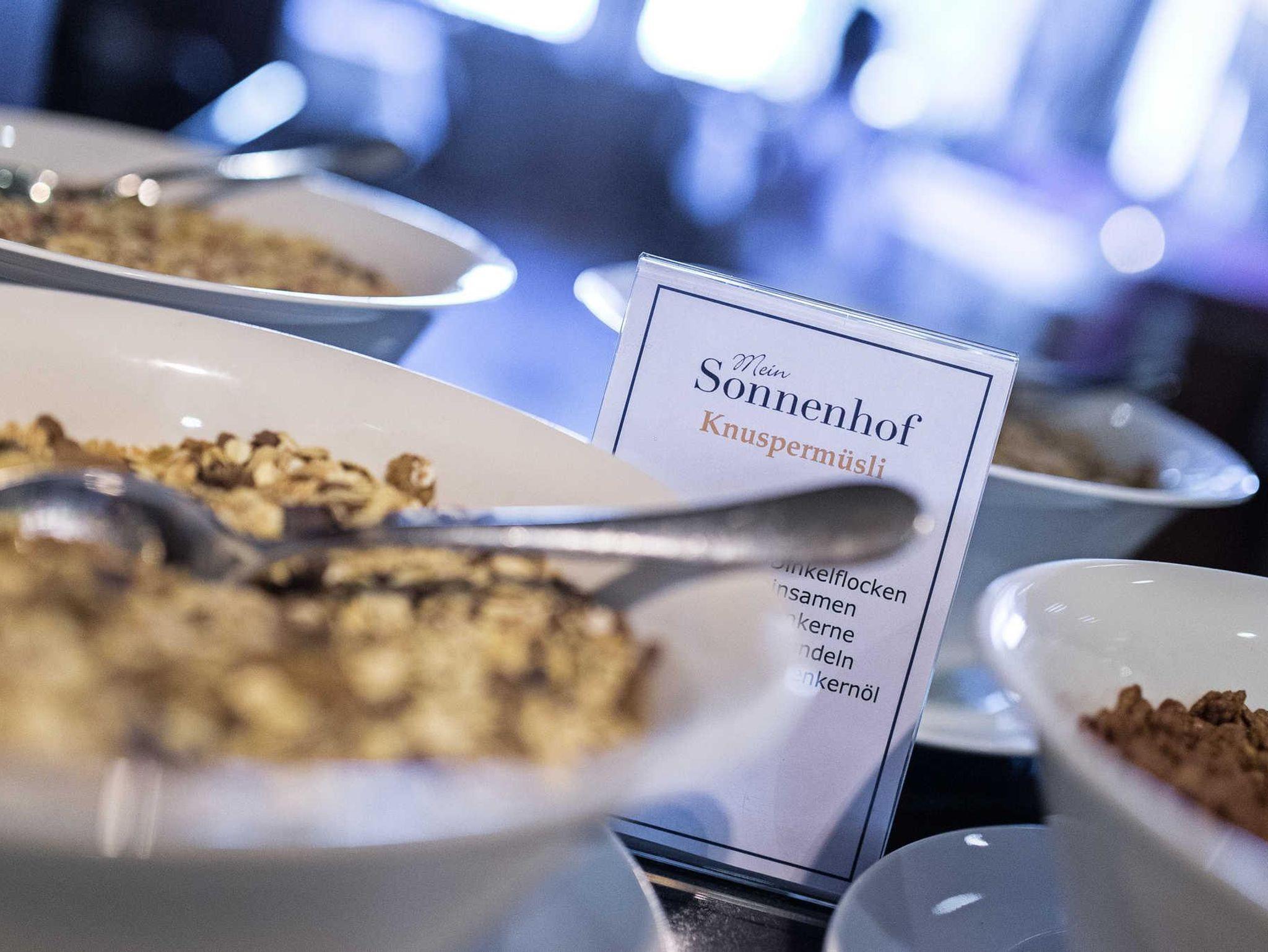 Michael Huber, der Chef des Hauses, kocht mit seinem Team moderne, naturbelassene Gerichte und verarbeitet zum großen Teil regionale Produkte. Highlight: Fine Dining im à la carte Restaurant ESSBAR. Lockere Atmosphäre & alpiner Lifestyle - Genießen, Sitzen & Wohlfühlen. ESSBAR im Genusshotel Sonnenhof – ausgezeichnet mit 2 Gabeln im Falstaff Restaurantguide & Nr. 1 Restaurant auf Tripadvisor.