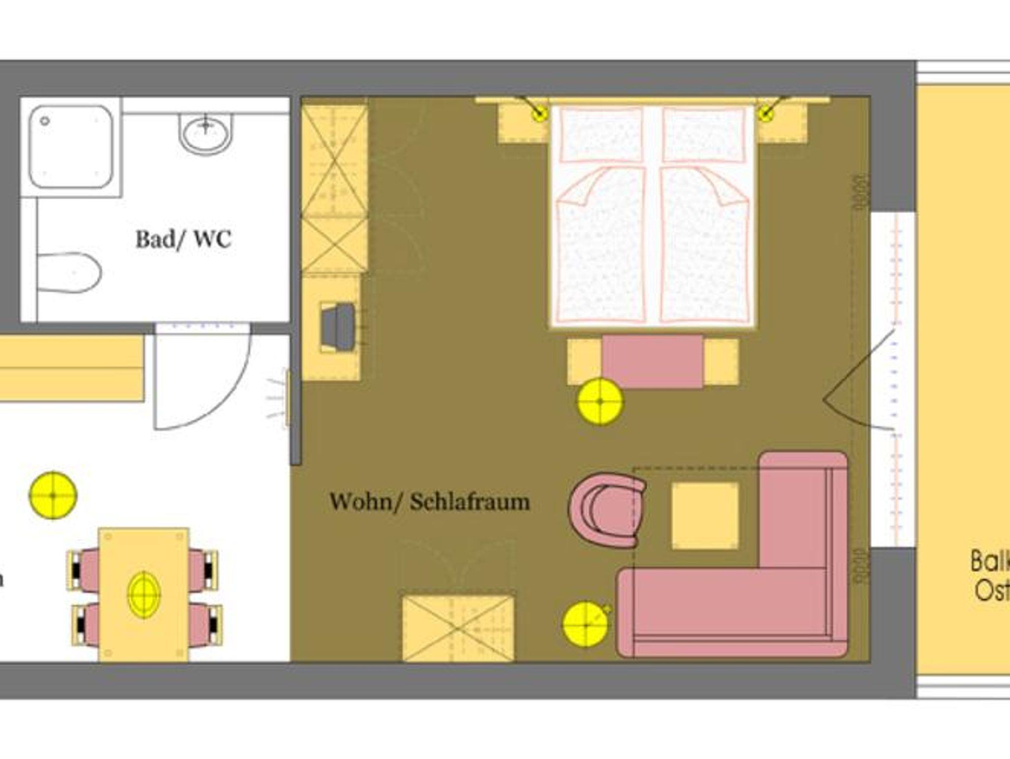 Kleines Appartement mit Balkon nach Osten im 1. Stock