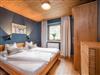 1 Schlafzimmer mit Doppelbett, Eichenholzboden und Verdunkelungsvorhängen