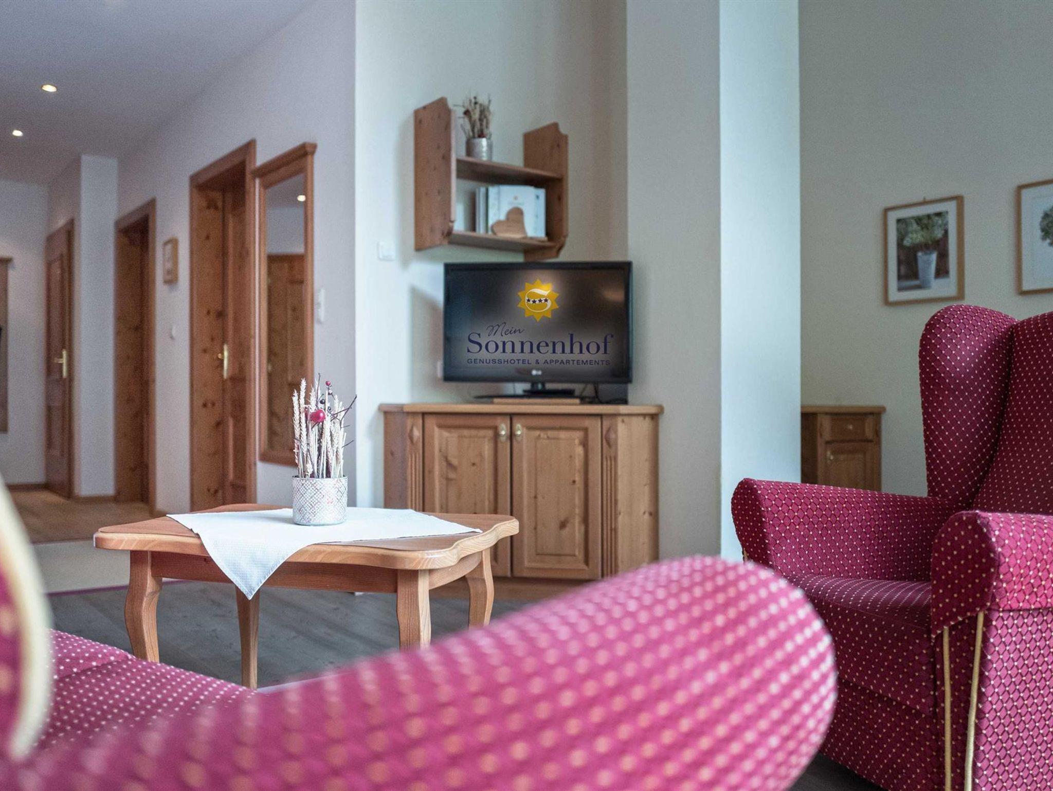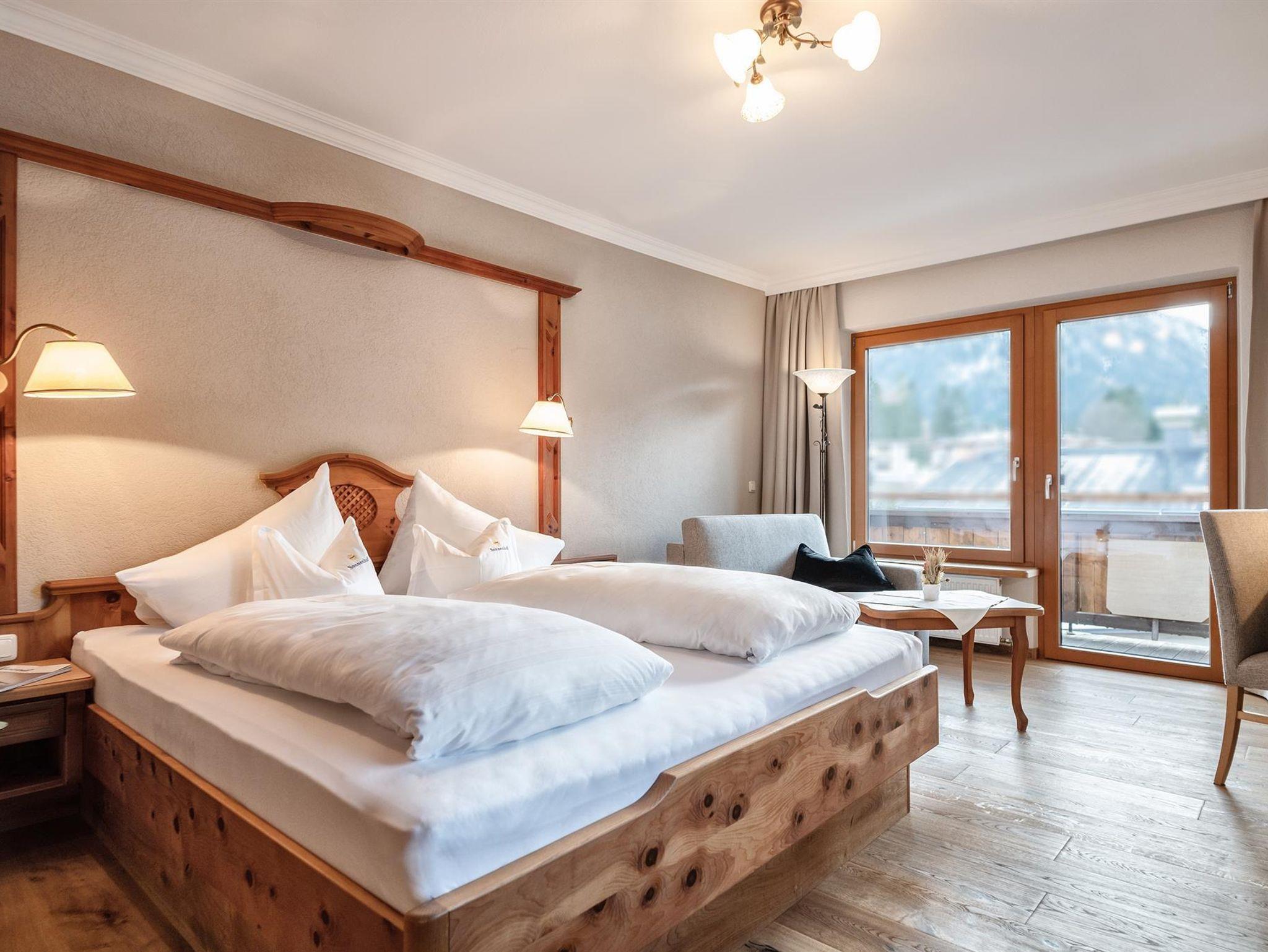 Im privat geführten Genusshotel Sonnenhof erwarten Sie 27 Zimmer, Suiten und 10 Ferienwohnungen - alpiner Charme, gemütlich & naturverbunden. Alle Zimmer bieten einen imposanten Ausblick auf die umliegende Tiroler Bergwelt. Kostenfreie Parkplätze & gratis W-LAN im gesamten Hotel.