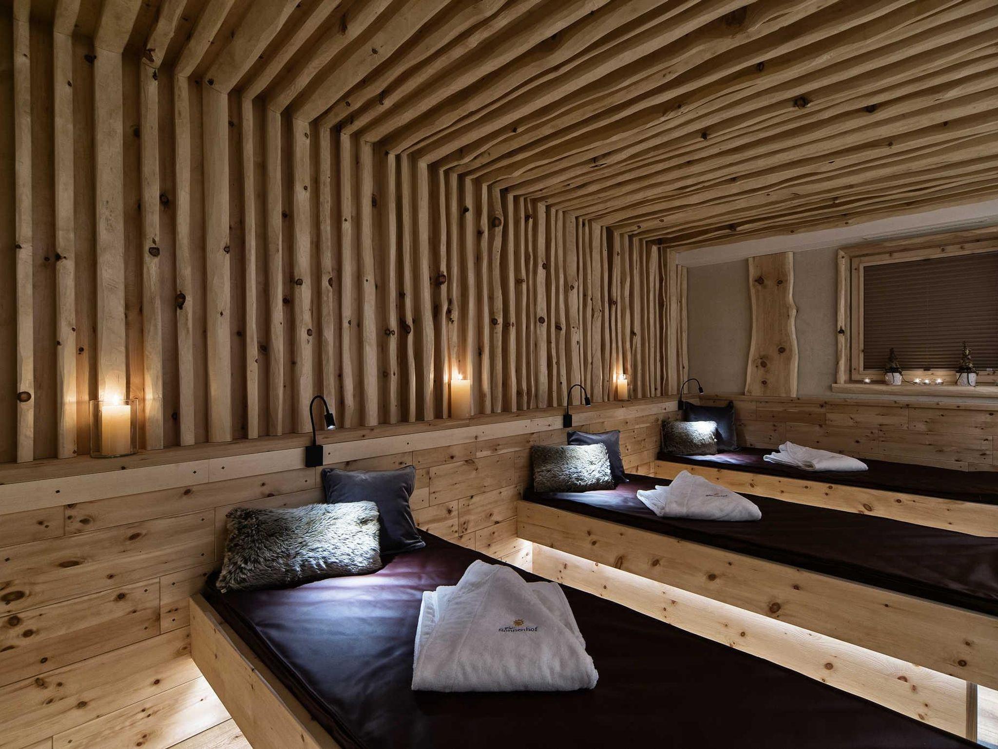Im Einklang mit der alpinen Natur erholen Sie sich im großzügigen & mit viel Liebe zum Detail gestalteten NATUR SPA Wellnessbereich. Entspannen Sie umgeben von heimischen Hölzern, natürlichen Stoffen und vielen liebevollen Details – Der Sonnenhof NATUR SPA mit Finnischer Außensauna, Kräuter-Biosauna, Meersalz-Infrarotkabine & Aroma-Dampfbad. Gemütliche Ruheräume mit warmen Wasserbetten und Kuschelecken laden zum Entspannen ein! Der Sonnenhof bietet eine feine Auswahl ausgesuchter Massageanwendungen.
