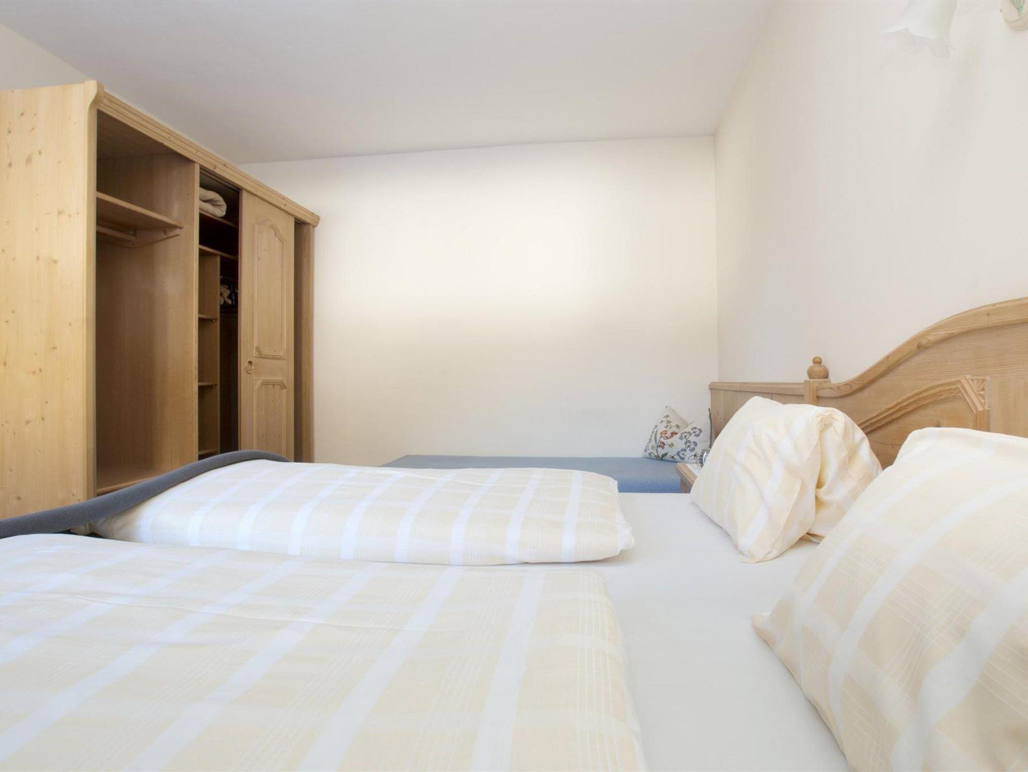 Diese Ferienwohnung ist mit 55m² für drei bis fünf Personen geeignet. Sie ist ausgestattet mit einem Schlaf- und Wohnraum, einem separaten Schlafzimmer mit drei Betten, mit einem Bad, WC und separaten Vorraum sowie einem Balkon nach Osten gerichtet.
