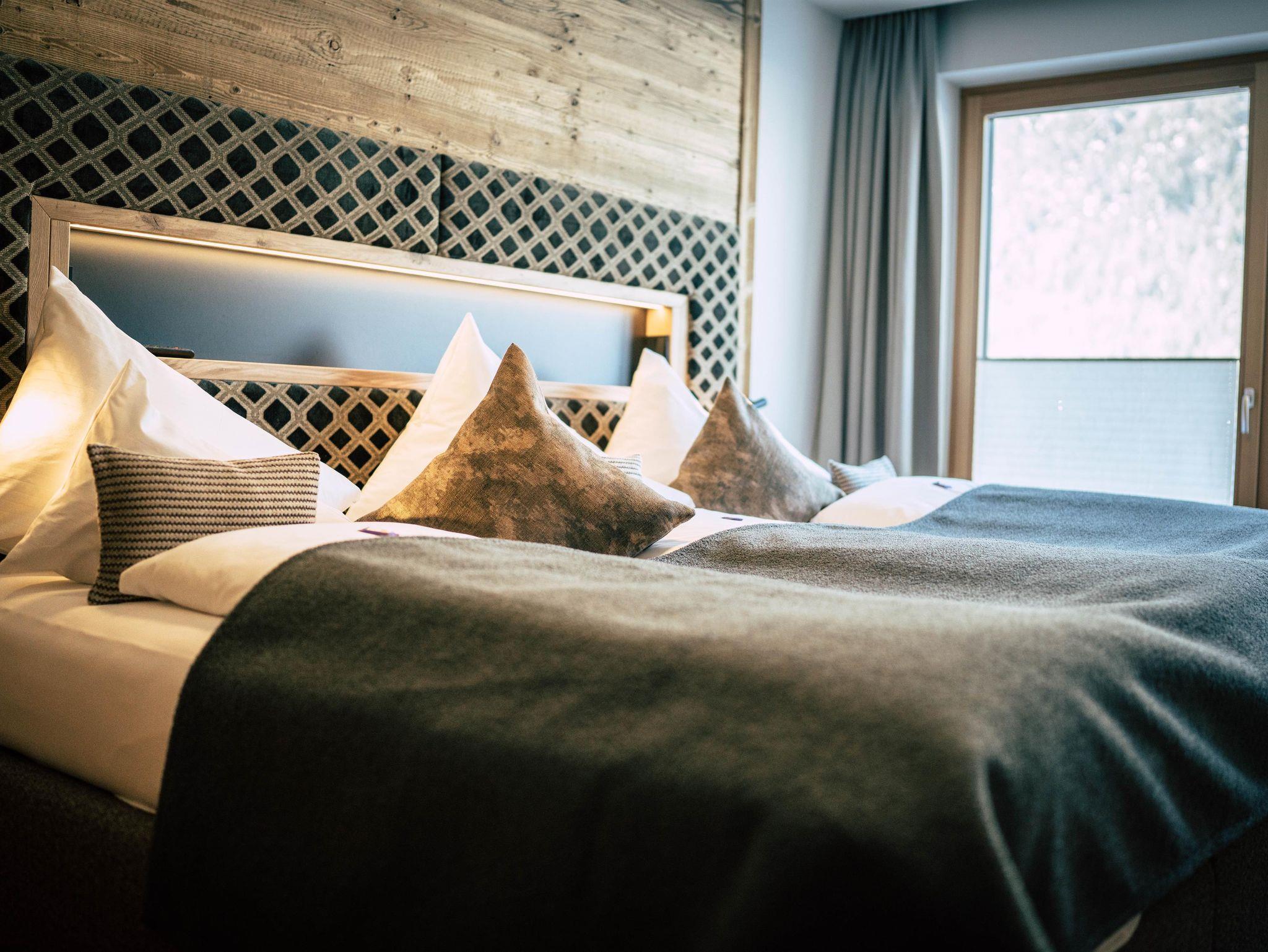 eine Einrichtung in edlem Holzdesign und hochwertigen Naturmaterialien für viel Gemütlichkeit, ein heimeliger Rückzugsort in mitten der beeindruckenden Bergwelt bereichern diese Wohlfühl-Atmosphäre