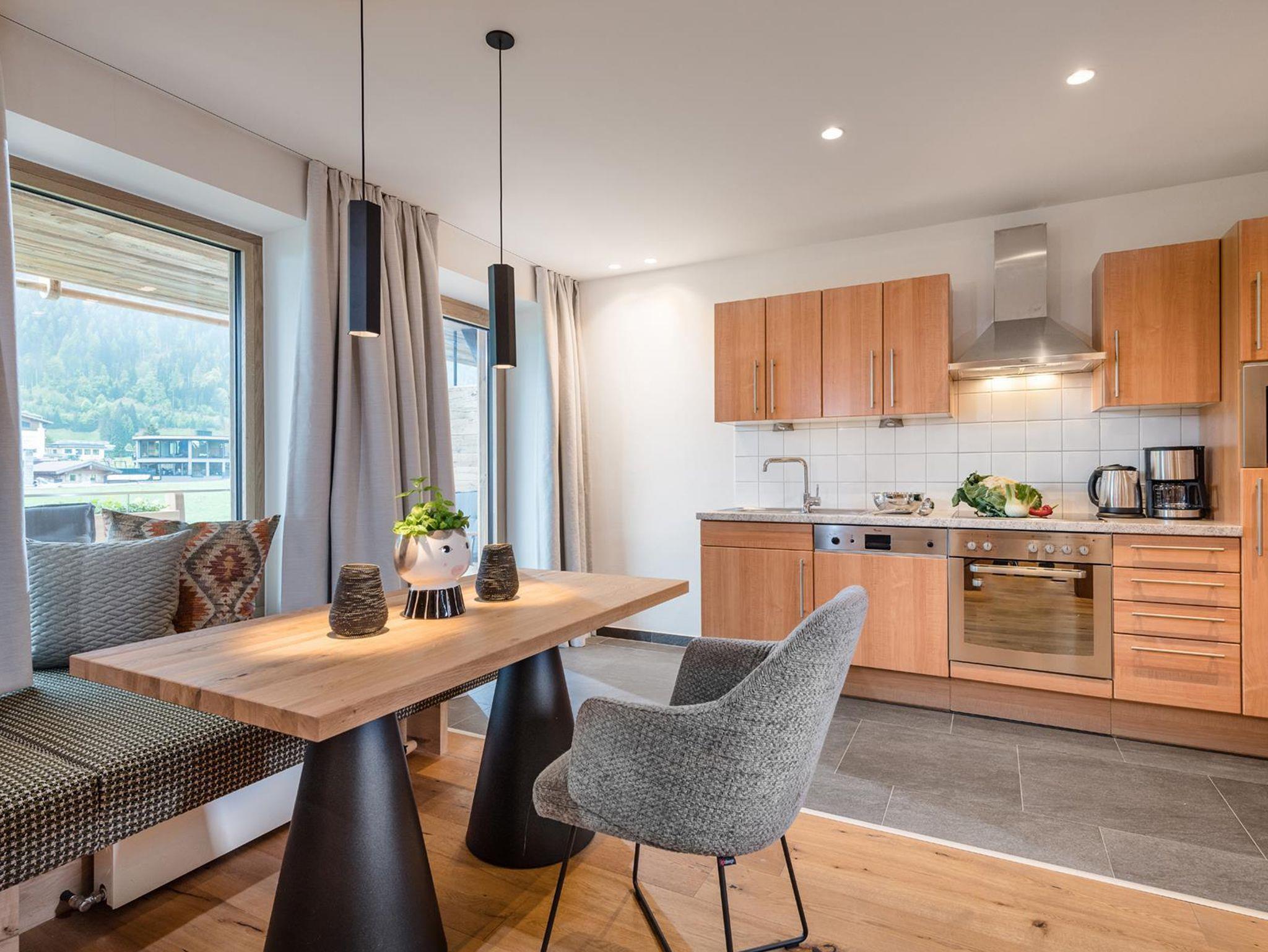 • gemütliche Wohnküche mit Wohn- und Essecke, komplett ausgestattete Küche mit 4-Platten-Cerankochfeld, Mikrowelle, Backofen, Kühlschrank mit Gefrierfach, Filterkaffeemaschine (auf Wunsch Nespresso verfügbar), Toaster, Wasserkocher, Geschirr, Besteck und Kochutensilien