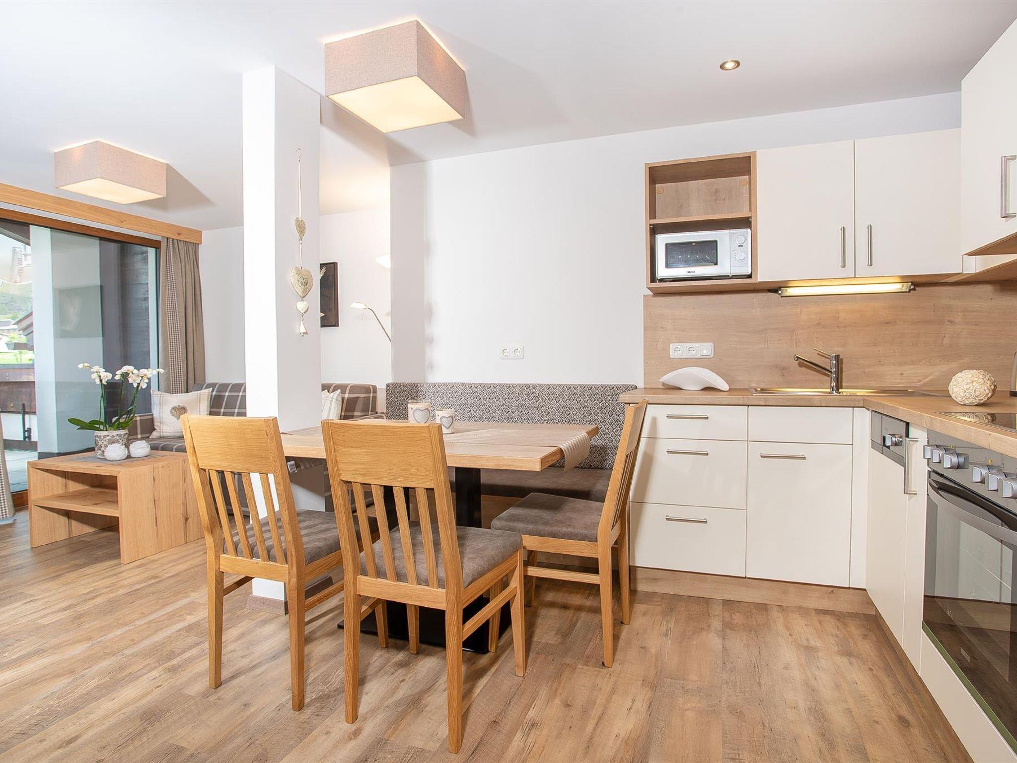 Die Ferienwohnungen Bergglück ist im Landhausstil mit 2 getrennten Schlafzimmer (zweites Schlafzimmer mit zwei getrennten Betten), 2 Bädern mit Dusche & WC, komplett ausgestatteter Küche mit Ceranfeld, Mikrowelle, Backrohr, Geschirrspüler und Filter-Kaffeemaschine einem gemütlichen Wohnraum mit Essecke und einem großen Balkon ausgestattet.