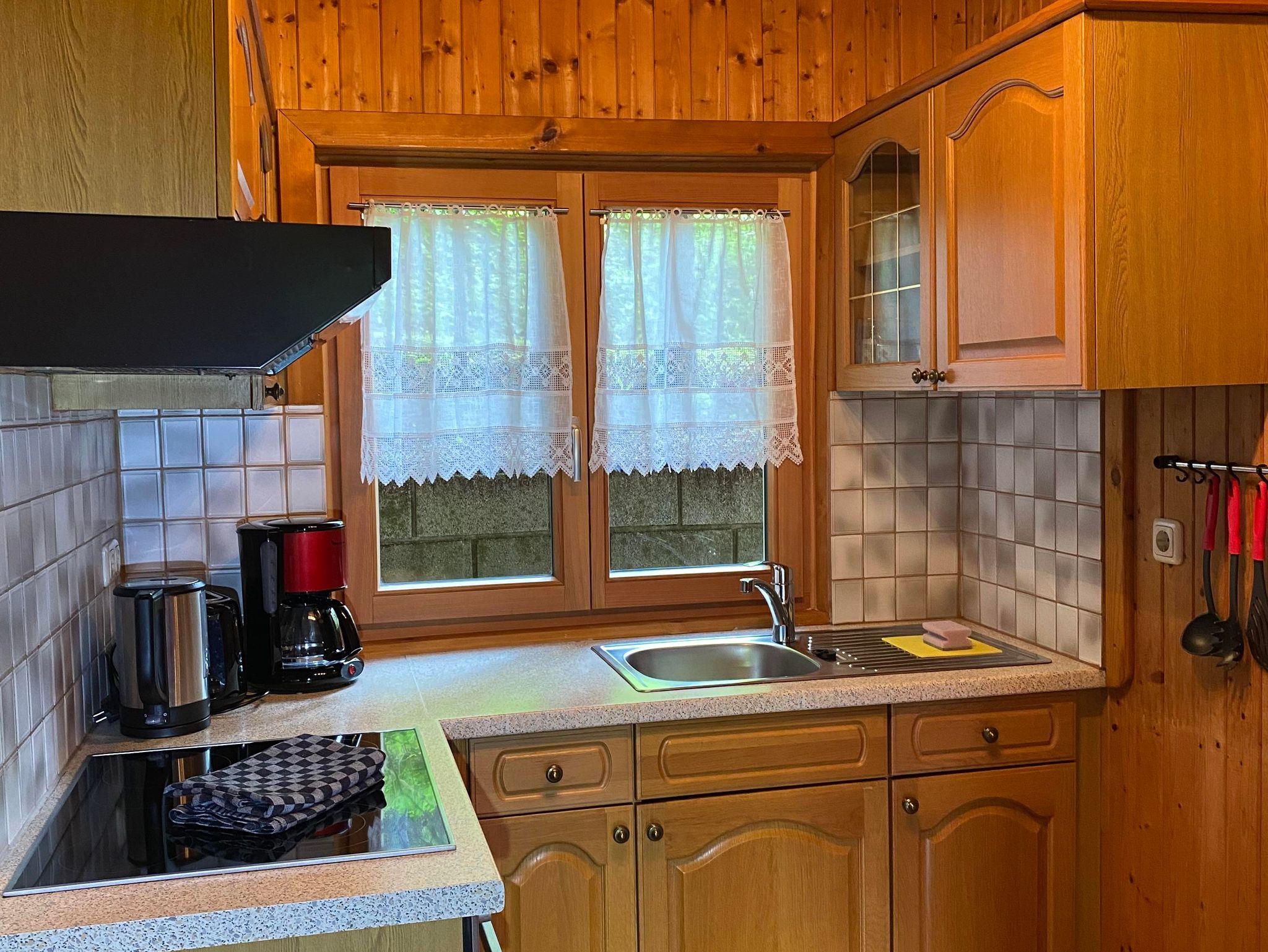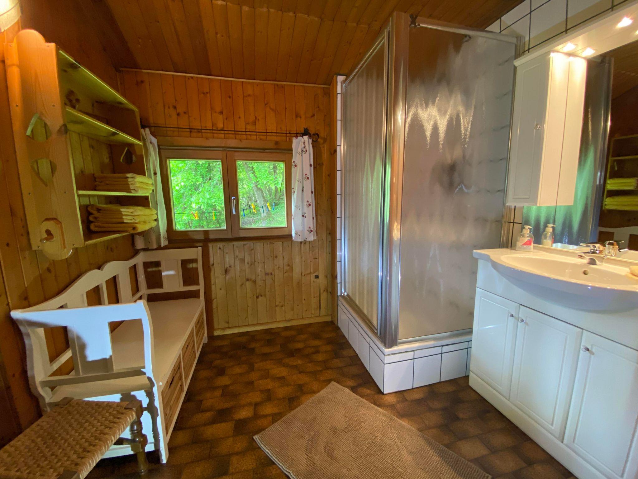 2 kleine Schlafzimmer mit je 2 Betten, ein gemütlicher Wohnraum mit Kachelofen (und genügend Brennholz für kalte Nächte), Küche und Dusche/WC. Viel Ruhe im eigenen Garten mit Gartenmöbeln und Grill oder Geselligkeit bei uns am Hof. WLan Corner finden Sie am Haupthaus, nicht in der Blockhütte.