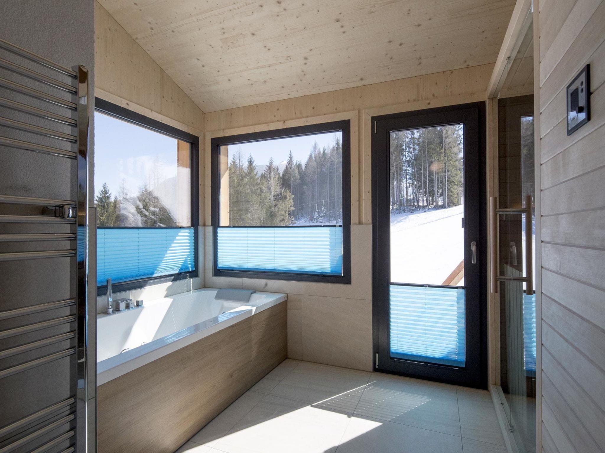 "Premium 09 mit Sauna & Swim Spa", 5-room chalet 120 m2. Bright, comfortable and tasteful furnishings: large living/dining room with Scandinavian wood stove, dining nook, satellite TV and flat screen. 3 double bedrooms. 1 room with 2 x 2 bunk beds. Open kitchen (oven, dishwasher, 4 ceramic glass hob hotplates, freezer, electric coffee machine). Bathroom, 4 showers/WC. Balcony. Balcony furniture. Beautiful view of the ski run. Facilities: sauna. Internet (WiFi, free). Please note: non-smokers only. The property is one of a type of property or apartment. This chalet has a private swim spa.