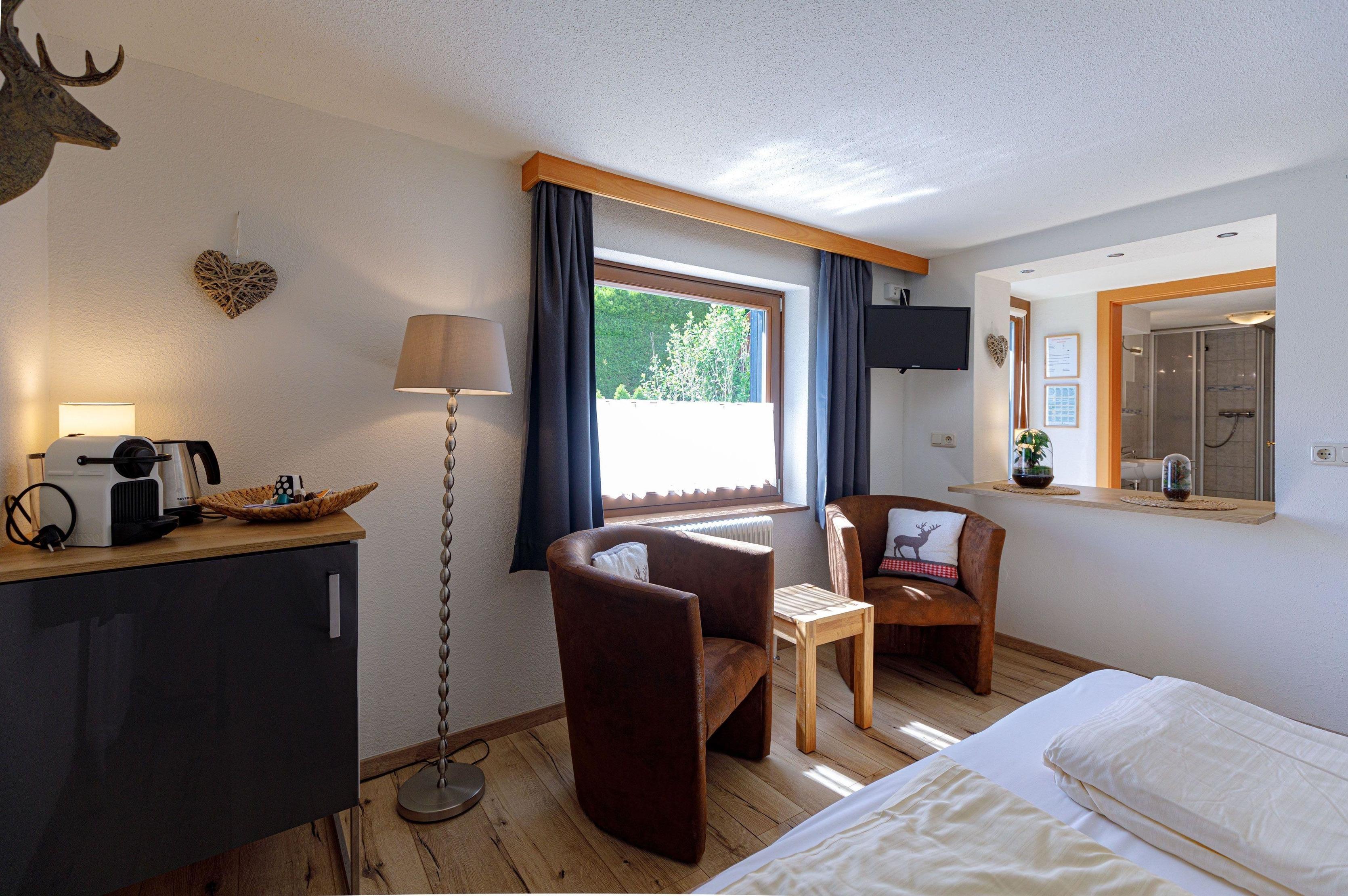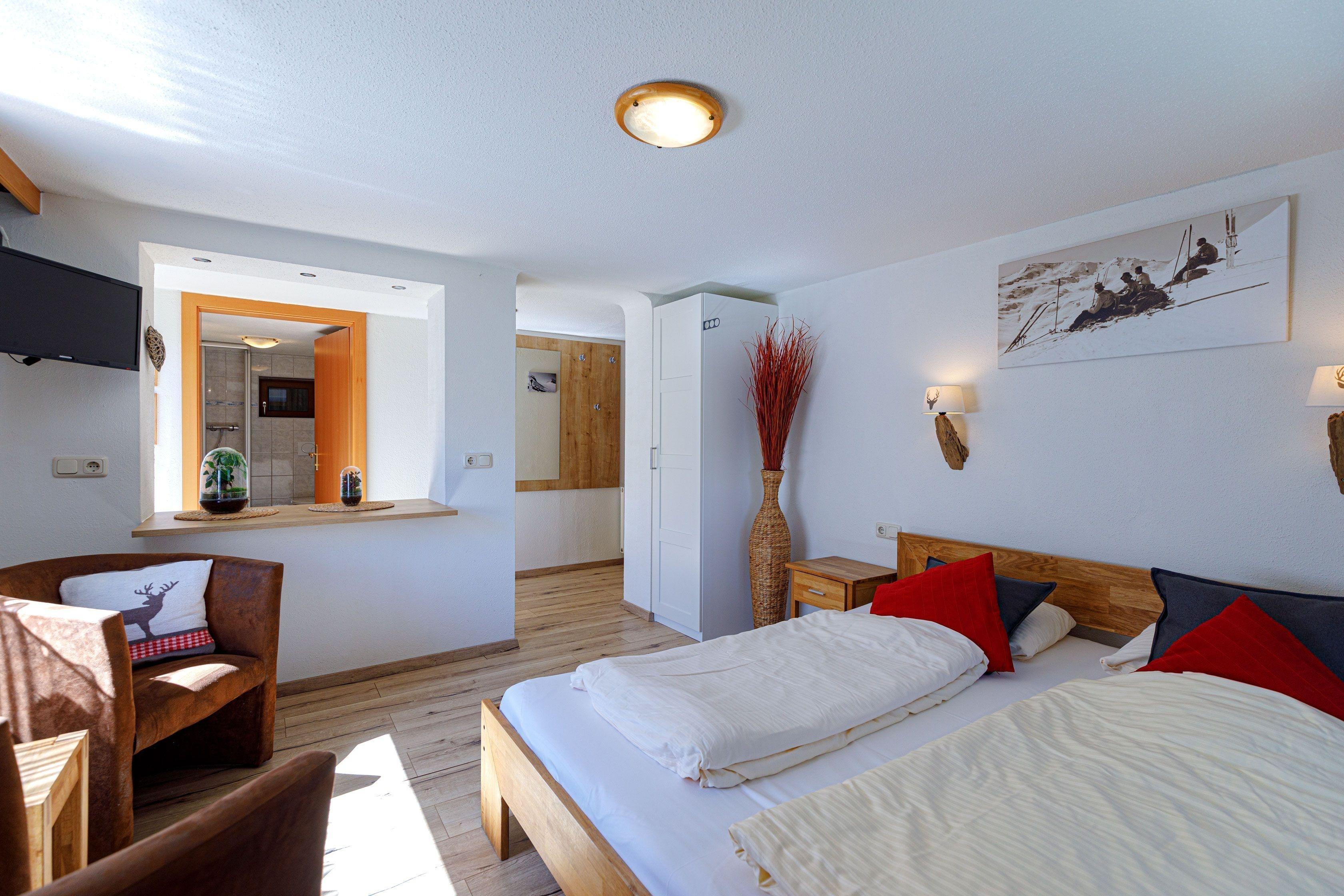 Das Landhaus Kitzblick bietet Ihnen die Geräumigkeit und den Komfort einer Ferienwohnung mit den Annehmlichkeiten einer gut ausgestatteten Pension. So könnn Sie jeden Morgen frische Brotchen bestellen und das beheitzte Schwimmbad und die Sauna benutzen.